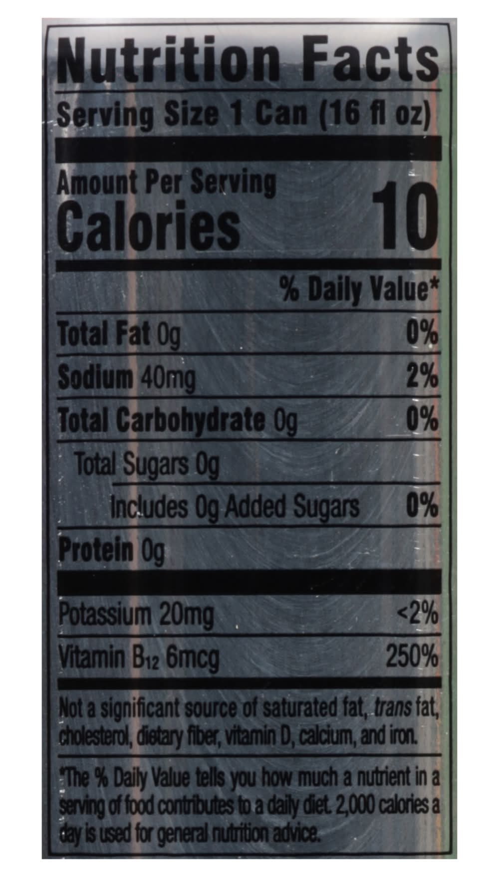 Ingredients: Carbonated Water, CarnoSyn® Beta-Alanine, BetaPower® Betaine Anhydrous, Citric Acid, Malic Acid, Natural & Artificial Flavors, Sodium Benzoate (Preservative), Caffeine Anhydrous, Sucralose, Acesulfame Potassium, Cyanocobalamin (Vitamin B12) Additives: Artificial Flavors