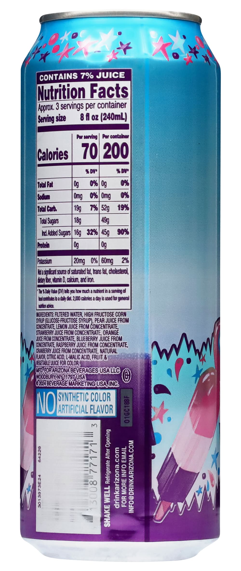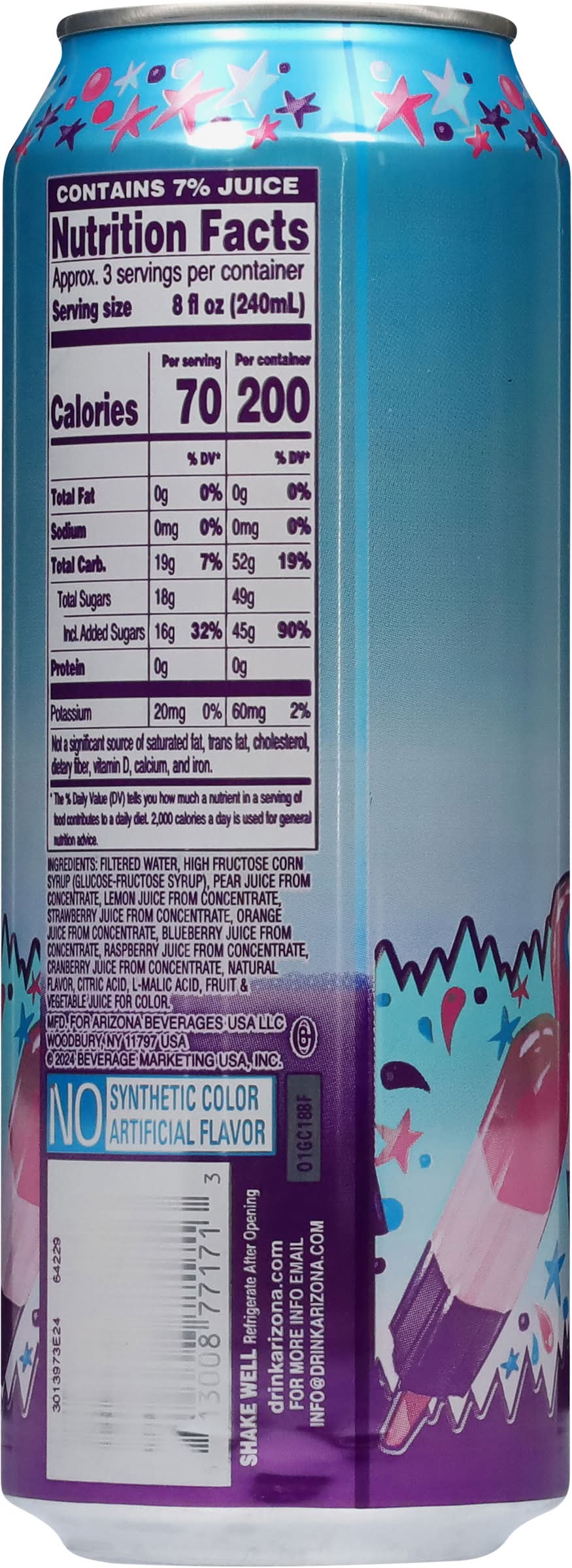 100% natural, Vitamin C fortified, no preservatives, no artificial flavor frost fruit blend simply to quench your thirst. • Brand: Arizona • Flavor: Frost chillzicle • kosher