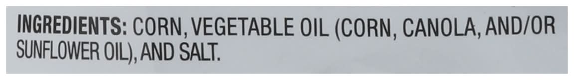 Ingredients: Corn, Vegetable Oil (Corn, Canola, and/or Sunflower Oil), and Salt Contains: Corn