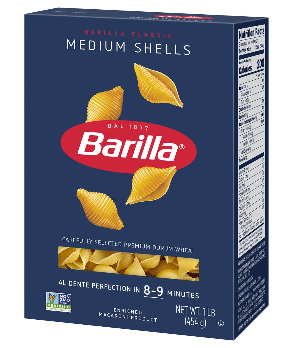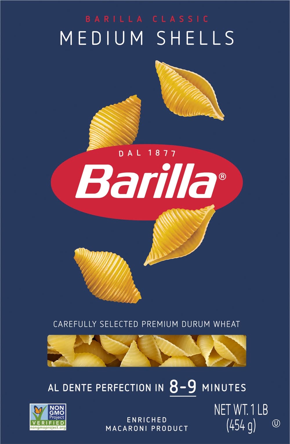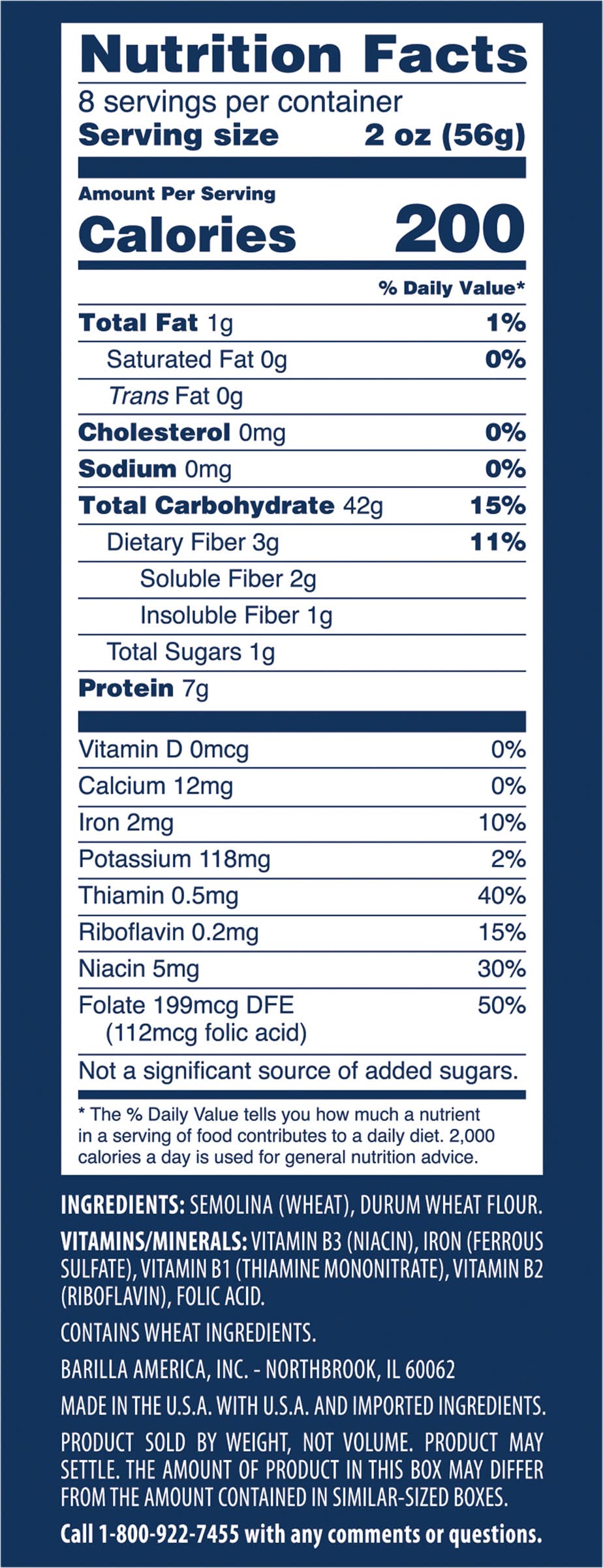 Enriched macaroni product. Barilla classic. Carefully selected premium durum wheat. Al dente perfection in 8-9 minutes. Crafted with 140 years of pasta-making expertise and a custom blend of the highest quality wheat, Barilla is always committed to bringing you the best pasta. The result Perfectly delicious and al dente pasta, every time. Product sold by weight, not volume. Product may settle. The amount of product in this box may differ from the amount contained in similar-sized boxes. Made in the USA with USA and imported ingredients. • Barilla America, Inc., Northbrook, IL, 60062 • Packaging: Reusable