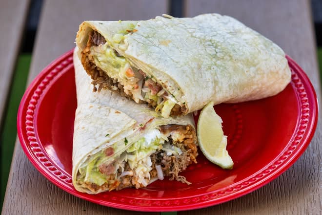 Weighing in over 2lbs, this is the chief! Two tortillas wrapped in choice of protein, double Mexican rice, refried beans, cabbage, cheese, pico de gallo, sour cream and guacamole!