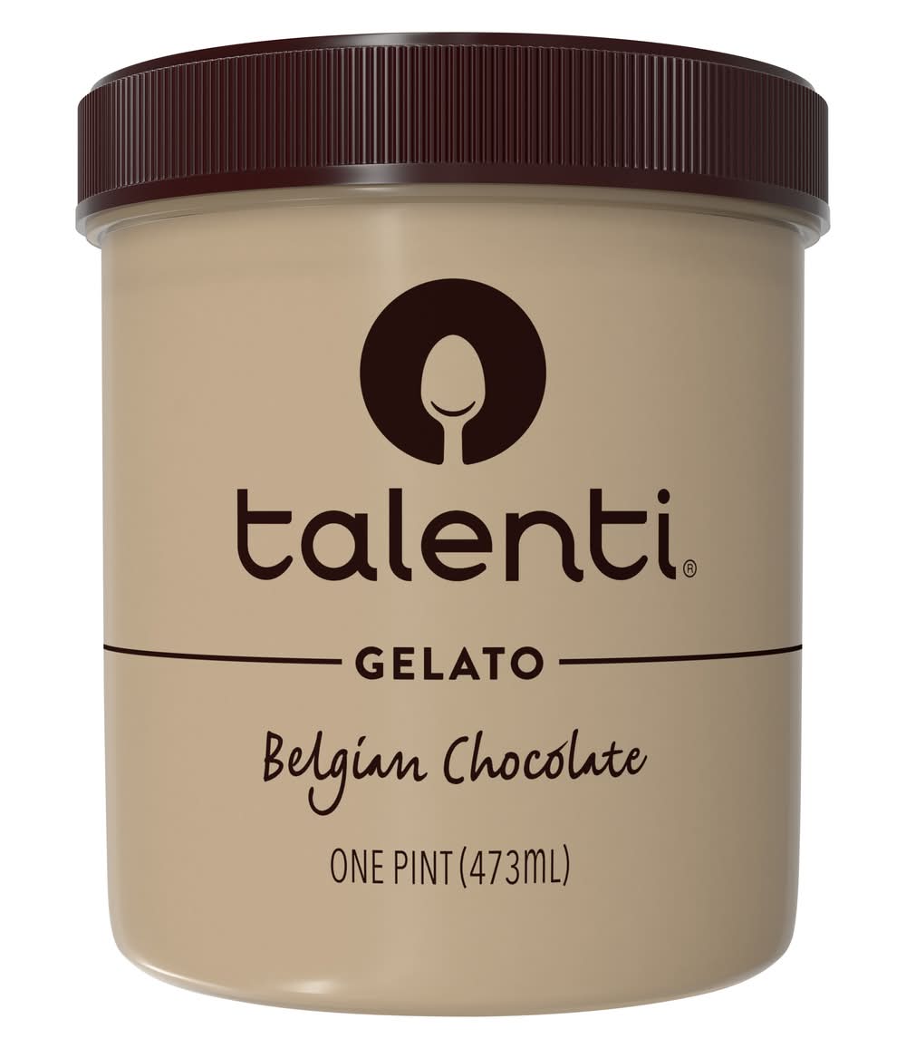 Talenti Gelato Belgian Chocolate, 1 pint • Unilever, Englewood Cliffs, NJ, 07632 • Packaging: Reusable