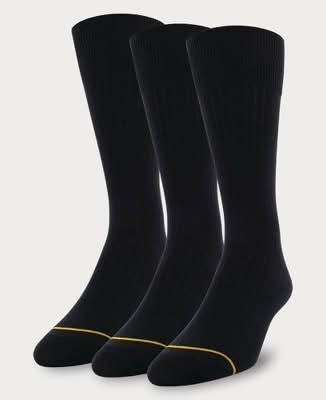 Gold Toe Signature Collection Cotton Crew Dress Rib Socks, Men, 6-12.5, Black (3 ct)