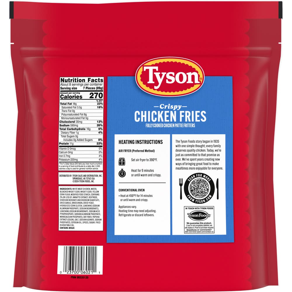 Our fully cooked chicken fries are made with 100% all natural chicken and have no added hormones or steroids. Chicken fries make a great side dish to eat on its own, or to dip in your favorite condiments. With 11g of protein per serving and made with white meat chicken, our tasty chicken fries give you a new way to have protein and fun. Keep frozen until ready to prepare, then cook in an air fryer or oven for warm and delicious chicken fries. Minimally processed, no artificial ingredients Federal regulations prohibit the use of added hormones or steroids in chicken. Flavor: White meat chicken