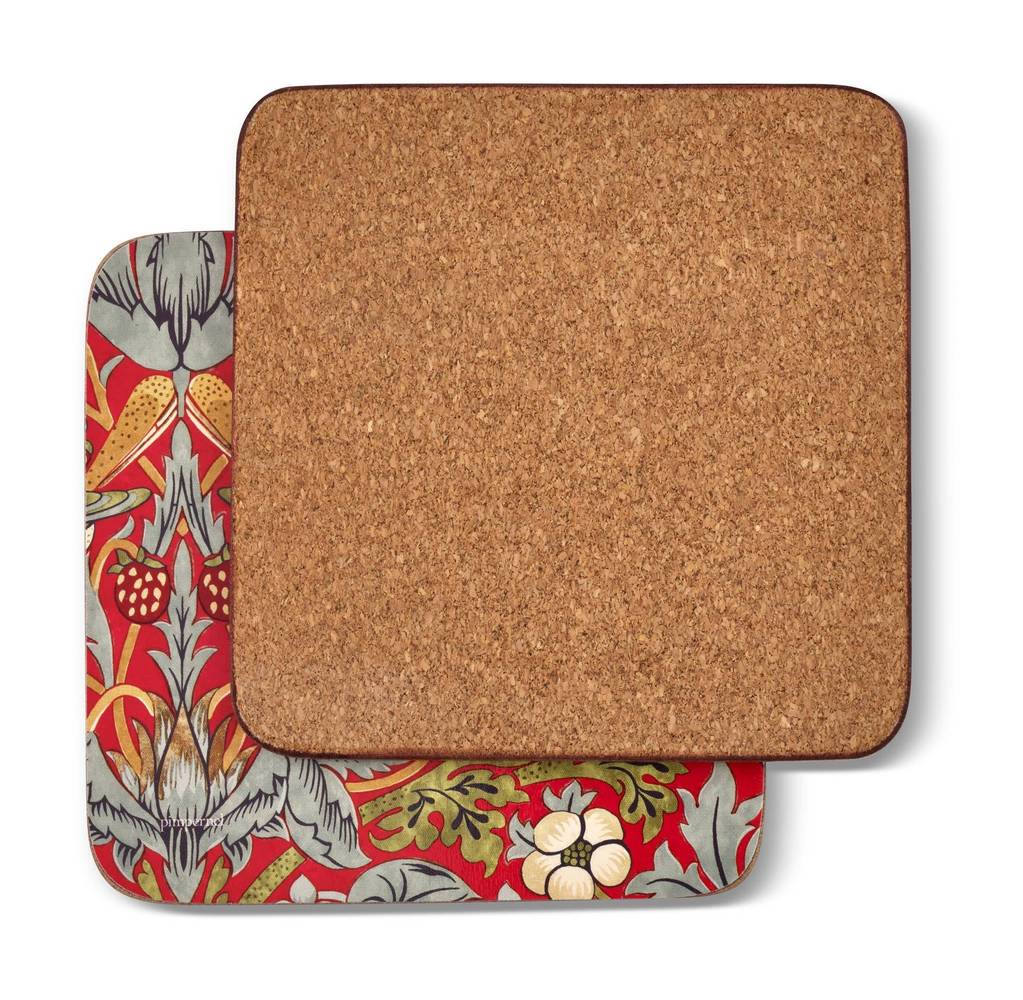 Pimpernel - William Morris Strawberry Thief Coasters Set of 6 - Red: MDF, Cork Backed / Strawberry Thief Red