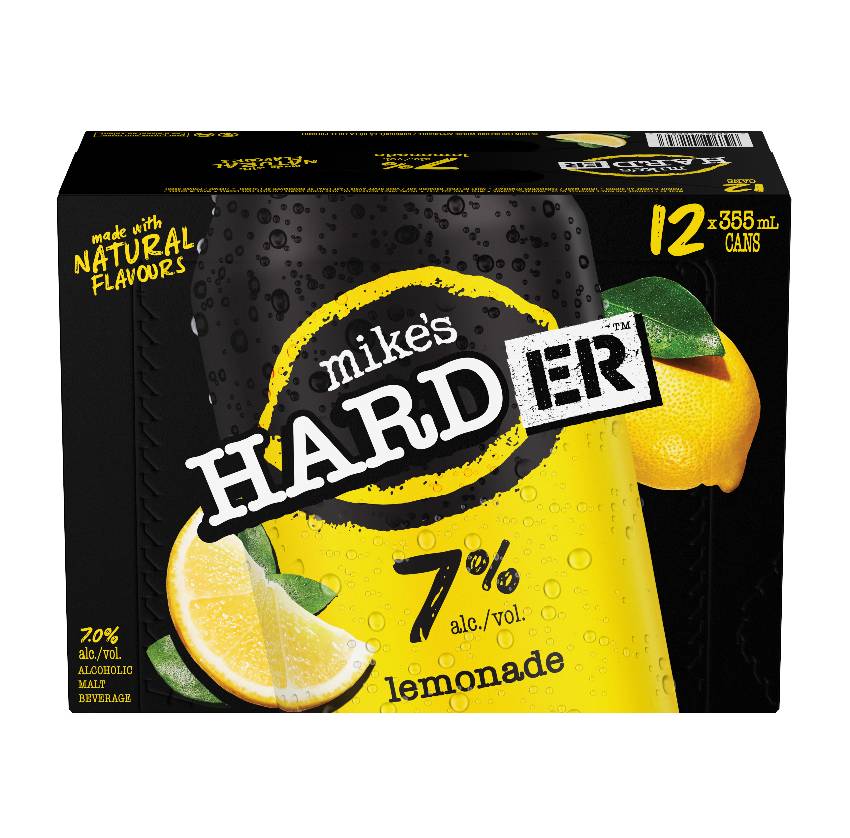 Mike’s Harder is the taste of our classic hard lemonade, now 7% ABV. A new pack offering in a malt base. A refreshing balance of sweet and tart. • Flavor: Lemonade • Pack size: 12 • Features : seasonal • Alcohol by volume: 7% • Packaging: Reusable