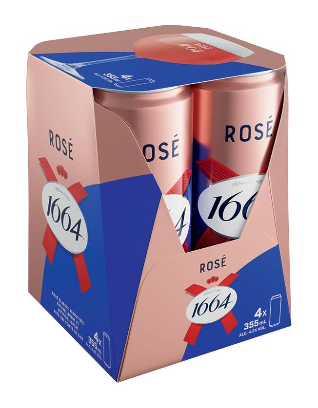 1664 Rosé is a light and refreshing wheat beer, with hints of red berries and a layered taste profile. Its unique flavour comes from the perfect harmony of its two distinct dimensions. • Pack size: 4 • Features : seasonal • Alcohol by volume: 4.5%