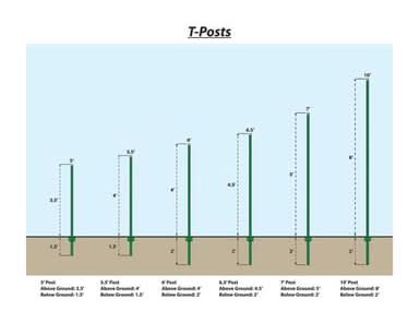 Everbilt Studded Steel T-Post adds durability and strength to fencing on rural, commercial and residential fence projects. The studded T-Post measures 1-3/4 in. x 3-1/2 in. and has a total length of 7 ft. When the anchor plate is totally buried in the ground, the post has an above ground height This product can expose you to chemicals including chromium, which is known to the State of California to cause cancer and birth defects or other reproductive harm. For more information go to www.P65Warnings.ca.gov. • Color: Green • Size: 1.75x3.5 in x 5 ft