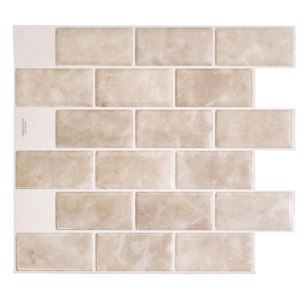 Smart Tiles Subway Sora 10.95 In. W X 9.70 In. Vinyl H Beige Peel And Stick Self-Adhesive Decorative Mosaic Wall Tile Backsplash