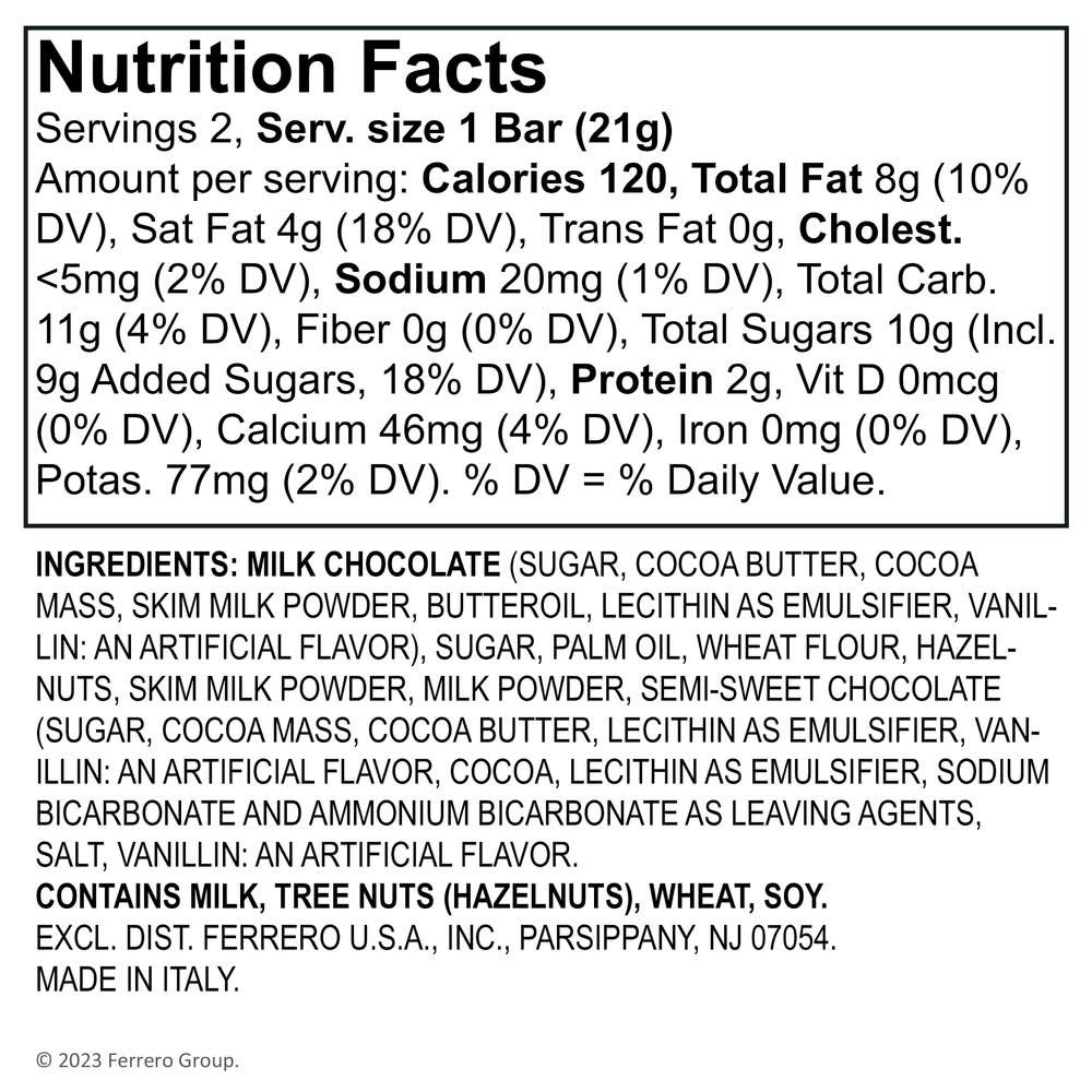 Discover a taste experience that defies expectation with this. This with family and friends, or reseal the box for convenient pantry storage. Smooth milk chocolate, and a crispy wafer deliver sensational taste with every bite. We choose ingredients according to our high standards of excellence in quality, freshness and commitment to achieving sustainability. Make ordinary coffee moments or movie nights extraordinary by adding a this, or make desserts and baked goods more delicious by topping them with it. • Brand: Kinder • Flavor: Hazelnut • Pack size: 4 • kosher