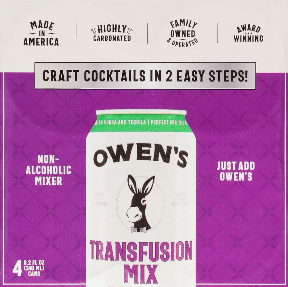 Owen's Transfusion Mix Non-Alcoholic Cocktail Mixer, Grape Juice & Ginger Ale (4 x 8.2 fl oz)