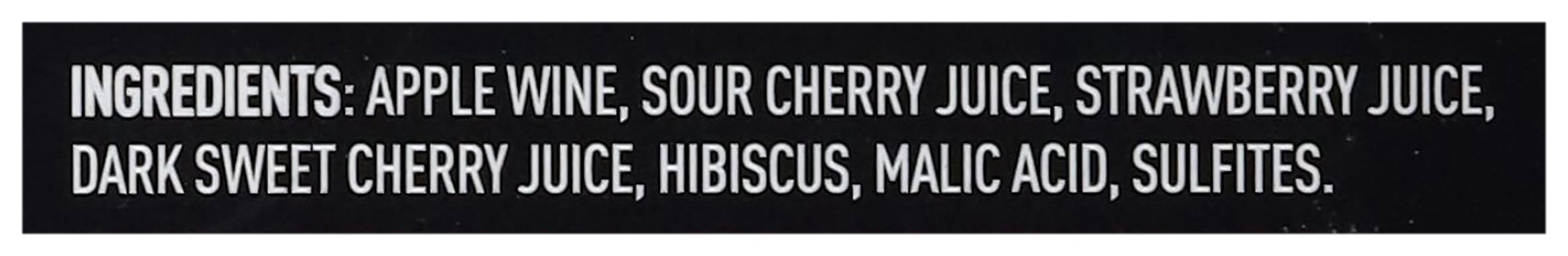 Ingredients: Apple Wine, Sour Cherry Juice, Strawberry Juice, Dark Sweet Cherry Juice, Hibiscus, Malic Acid, Sulfites Contains: Sulfites