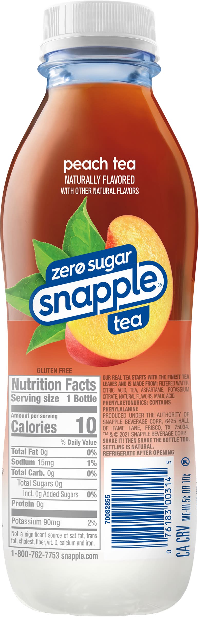 Snapple Zero Sugar Ready To Drink Fruit Tea, Peach Tea (16 fl oz)