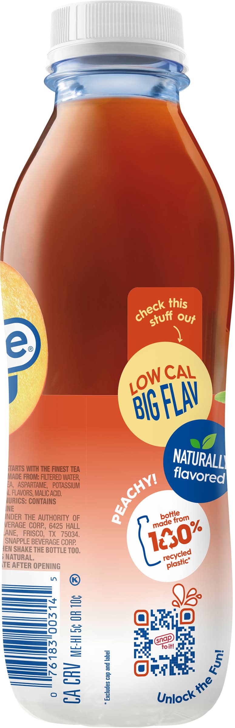 • Flavor: Peach tea • Snapple beverage corp., Plano TX 75024 • Packaging: Reusable