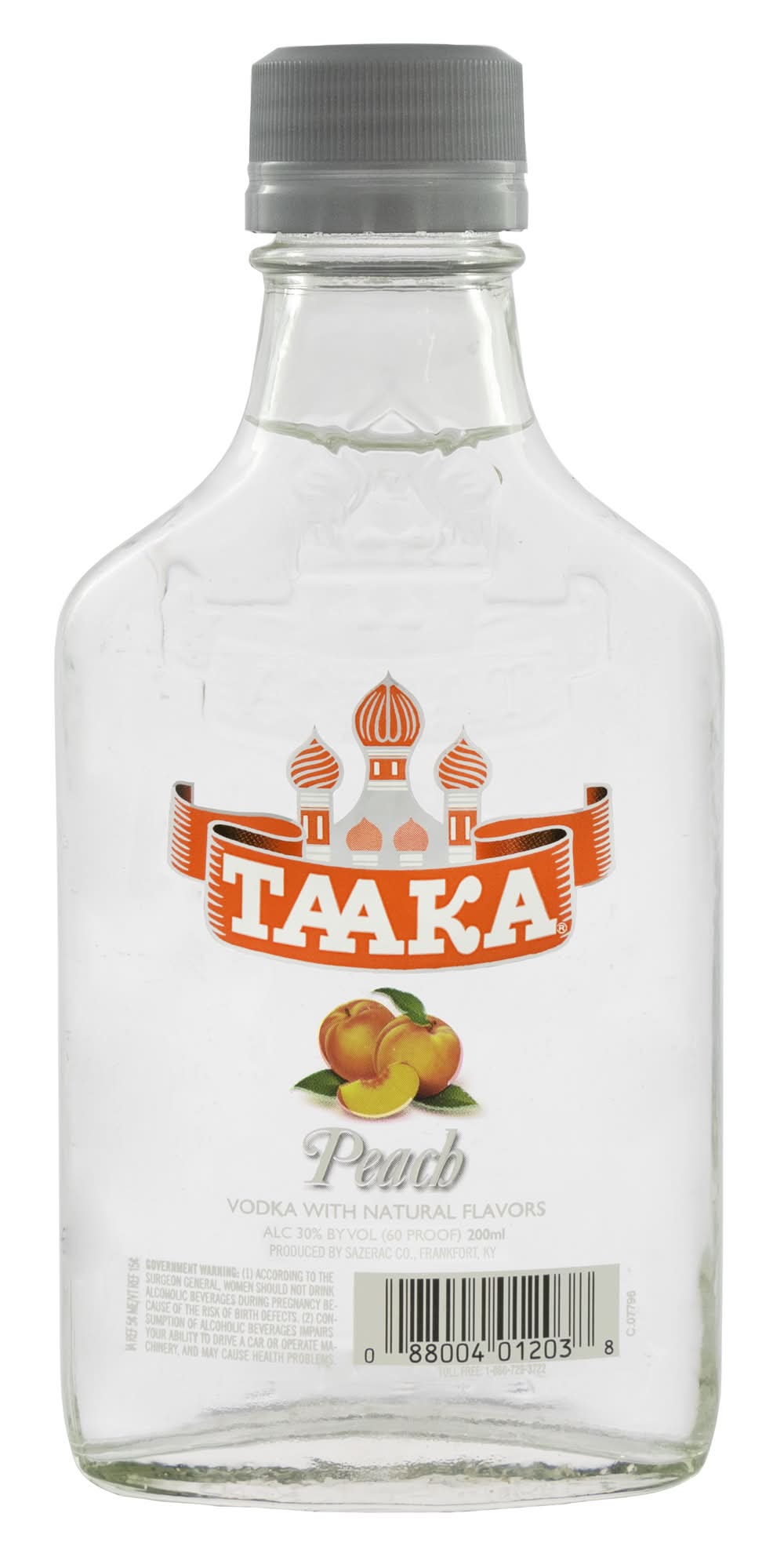 Taaka Peach Vodka • Brand: Taaka • Category: Flavored vodka • Alcohol by volume: 30% • Flavor: peach • Liquor color: clear