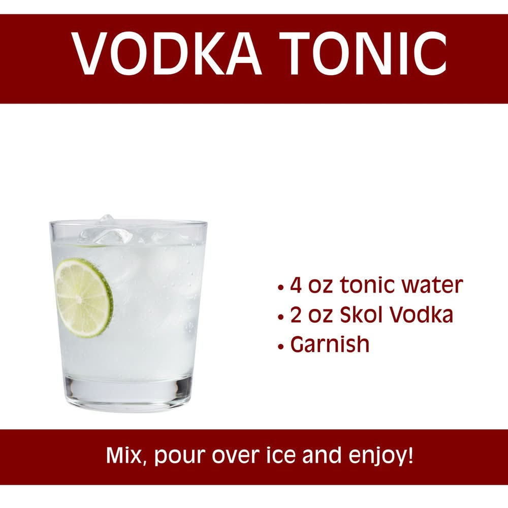 Amplify your drinking experience with Skol. Skol is crafted using high-quality ingredients for an exceptionally pure spirit with a clean, crisp taste. Enjoy this 80 Proof vodka liquor chilled or enjoy neat. Skol vodka also goes great in your favorite mixed drinks and cocktails, from a vodka martini, Bloody Mary or a Moscow Mule. • Brand: Skol • Category: Vodka • Alcohol by volume: 40%