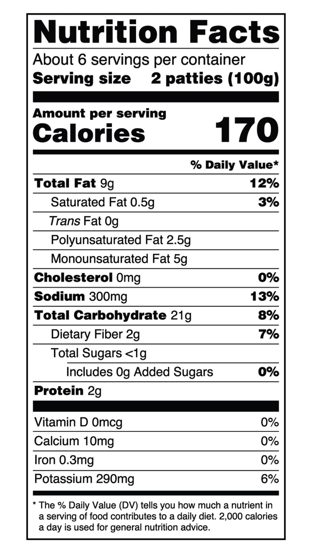 Directions for use: Directions: 9 Minute (Oven cook time of 9-11 minutes at 425 degrees F). Air Fryer: Preheat air fryer to 390 degrees. Arrange frozen patties in a single layer on bottom of a fryer basket do not overlap product. Air fry for 7 to 11 minutes. Serve immediately. Oven: Preheat oven to 425 degrees F. Spread frozen patties in a single layer on a dark, non-stick baking sheet or shallow baking pan. Bake for 9 to 11 minutes, no flipping of the product required. For extra crispy results, cook an additional 2 – 3 minutes. Serve immediately. Quick cook Hash browns are quality potatoes that oven cook in a little as 9 minutes. No flip required! We cook them longer so you can spend less time baking and more time sharing food and memories with friends and family. Mc Cain quick coon hash browns make a perfect side dish for morning or evening. Try a bag today Cooking Guidelines: Note: Cook from frozen state using recipes time and temperature. Always cook to light color. Do not overcook! Product must be foil cooked for food safety and quality. Keep frozen. Storage recommendation: Keep frozen.
