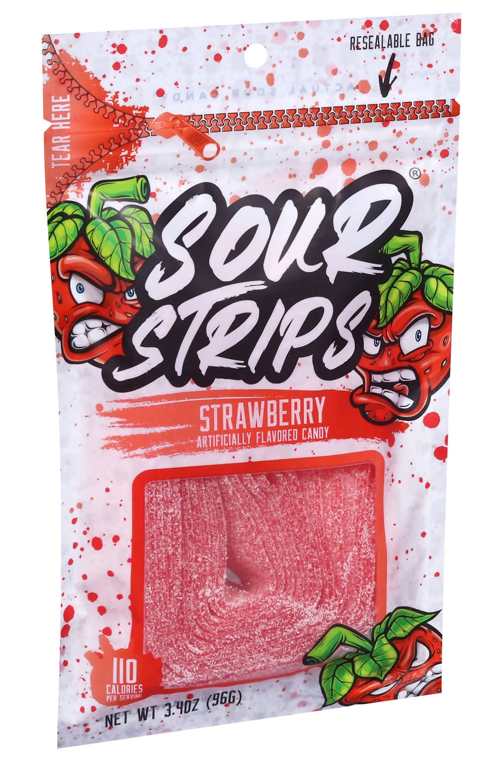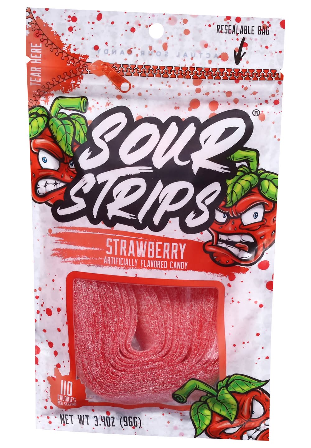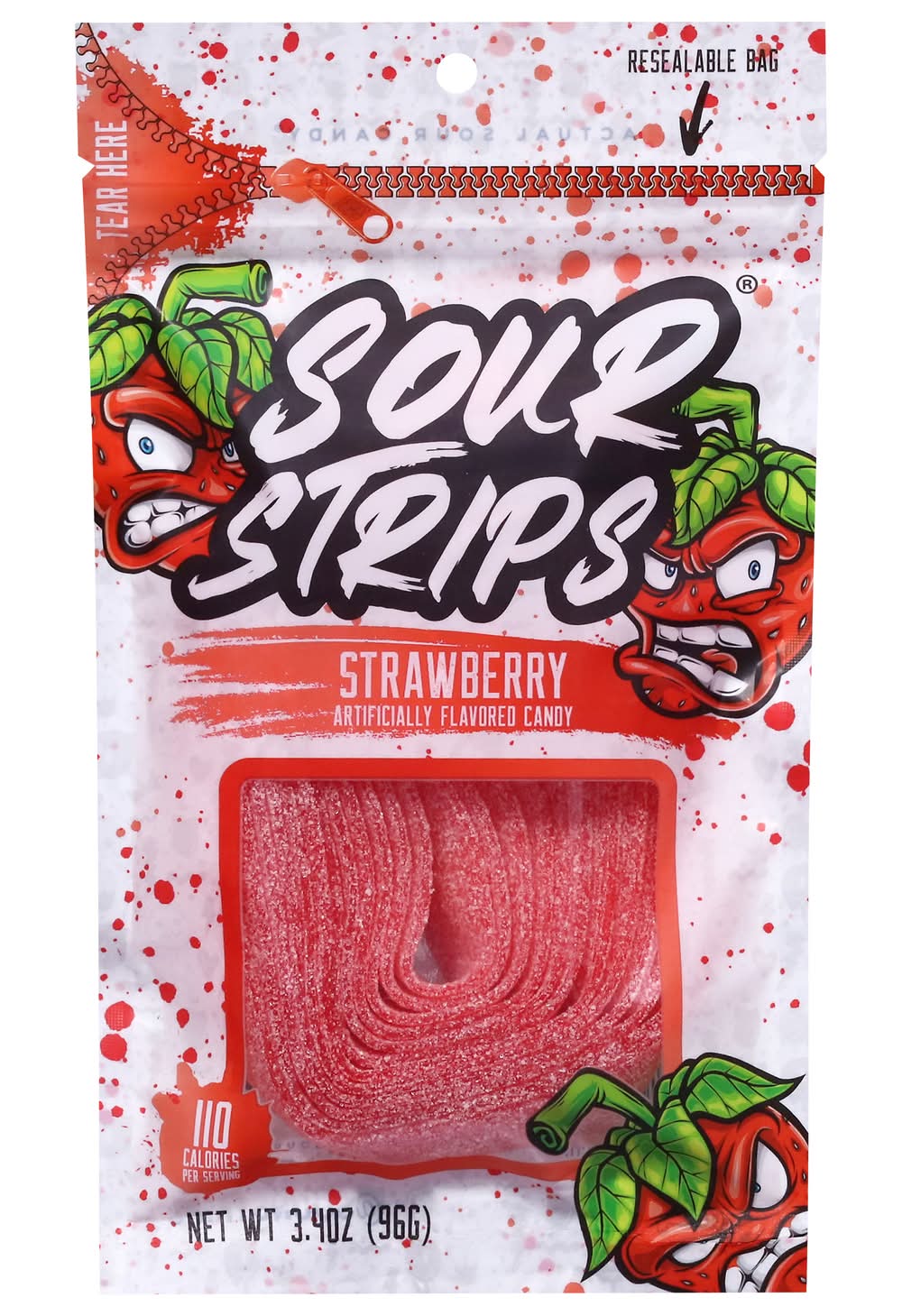 Strawberry is an artificially flavored candy known for its burst of flavor followed by a sour kick. Each package comes in a resealable bag, allowing for multiple uses while maintaining freshness. Flavor: Strawberry