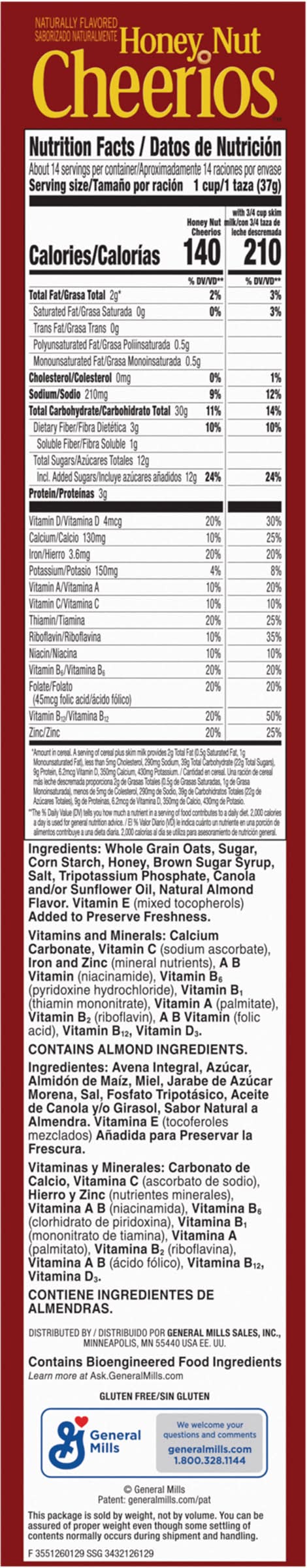 • Flavor: Honey nut • General Mills Sales, Inc., Minneapolis, MN, 55440 • Packaging: Reusable
