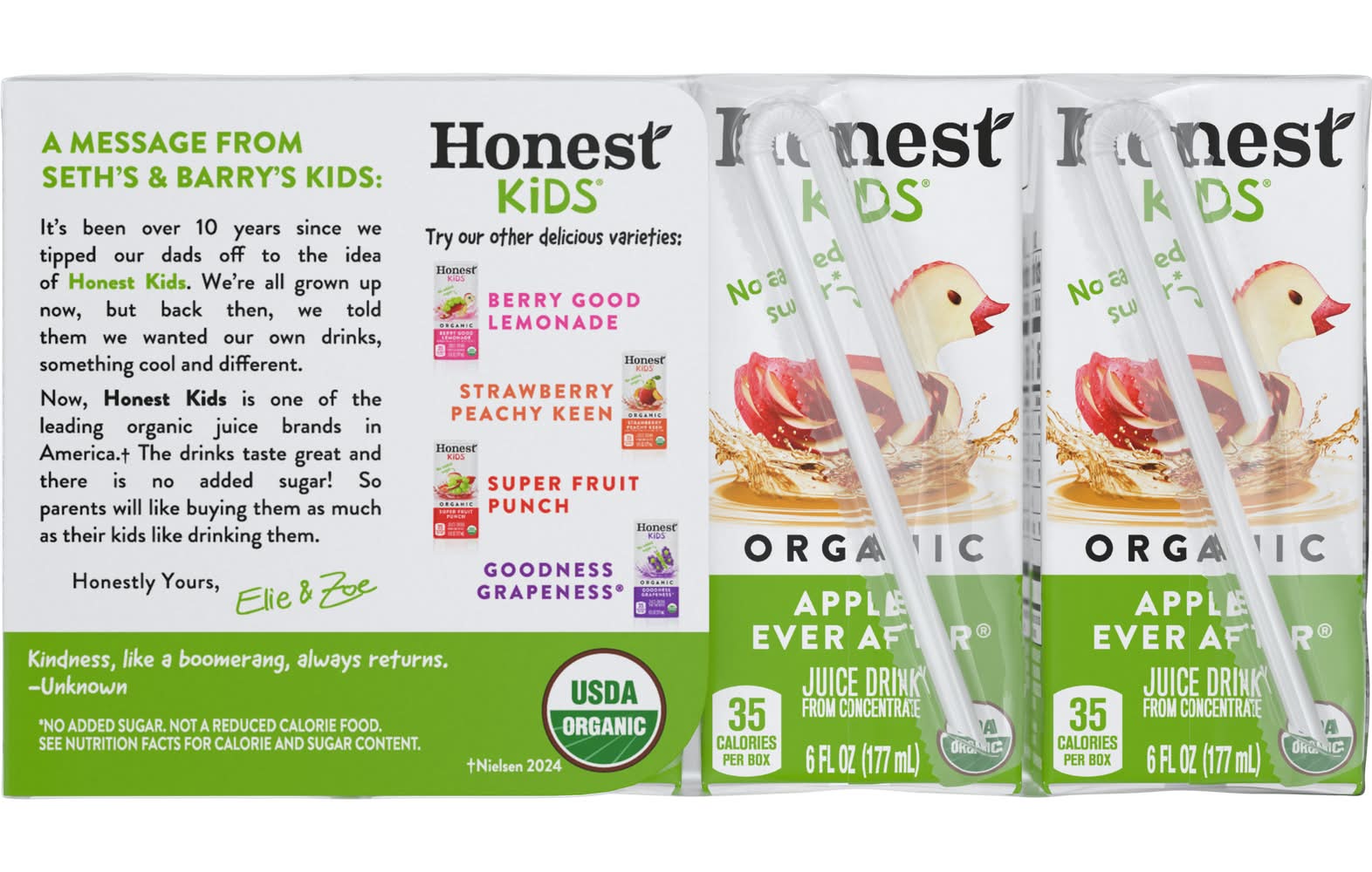 Once upon a time, there was a delicious organic apple juice from Honest Kids called Appley Ever After. This refreshing beverage will leave your kids happy and satisfied, just like a classic storybook ending. Plus, it's an excellent source of Vitamin C and it has no added sugar. Honest seeks to create and promote sustainable, great-tasting beverages with honesty and integrity, which means telling you exactly what's in every beverage from the get-go. • Pack size: 8 • Honest Tea, Inc, Atlanta,GA,30313 • Packaging: Reusable