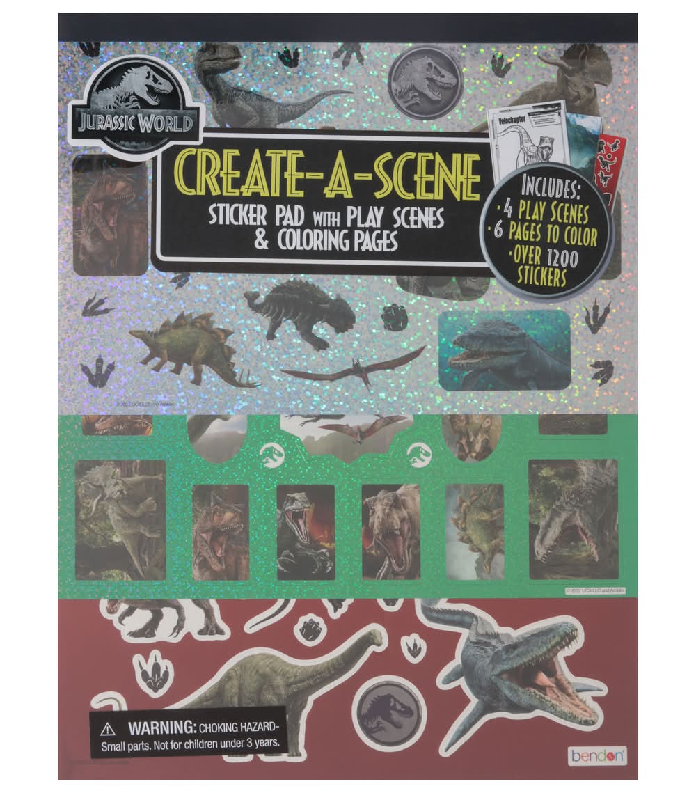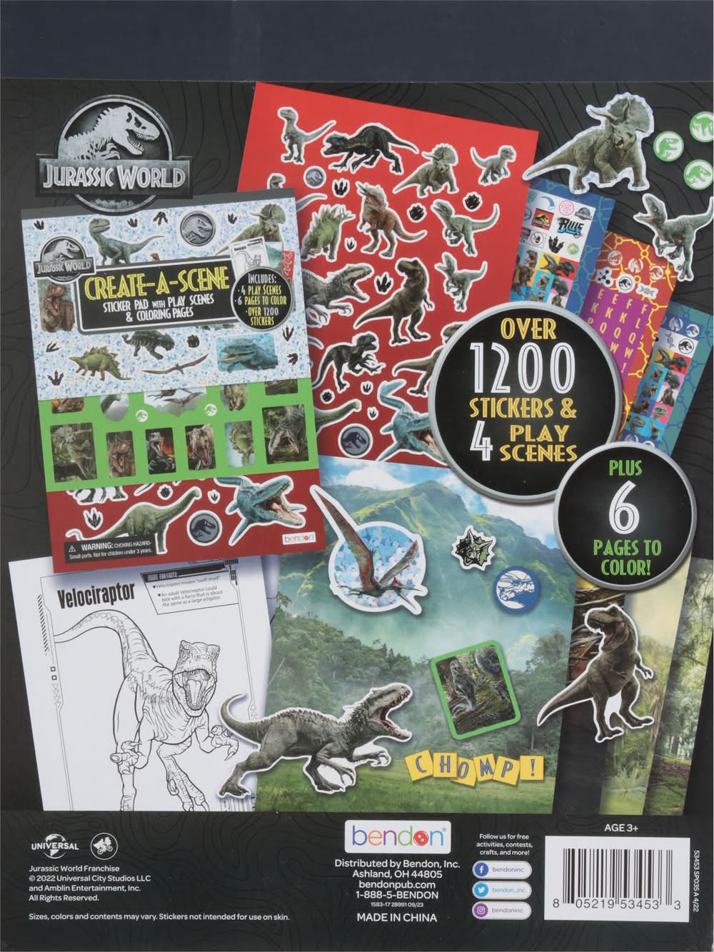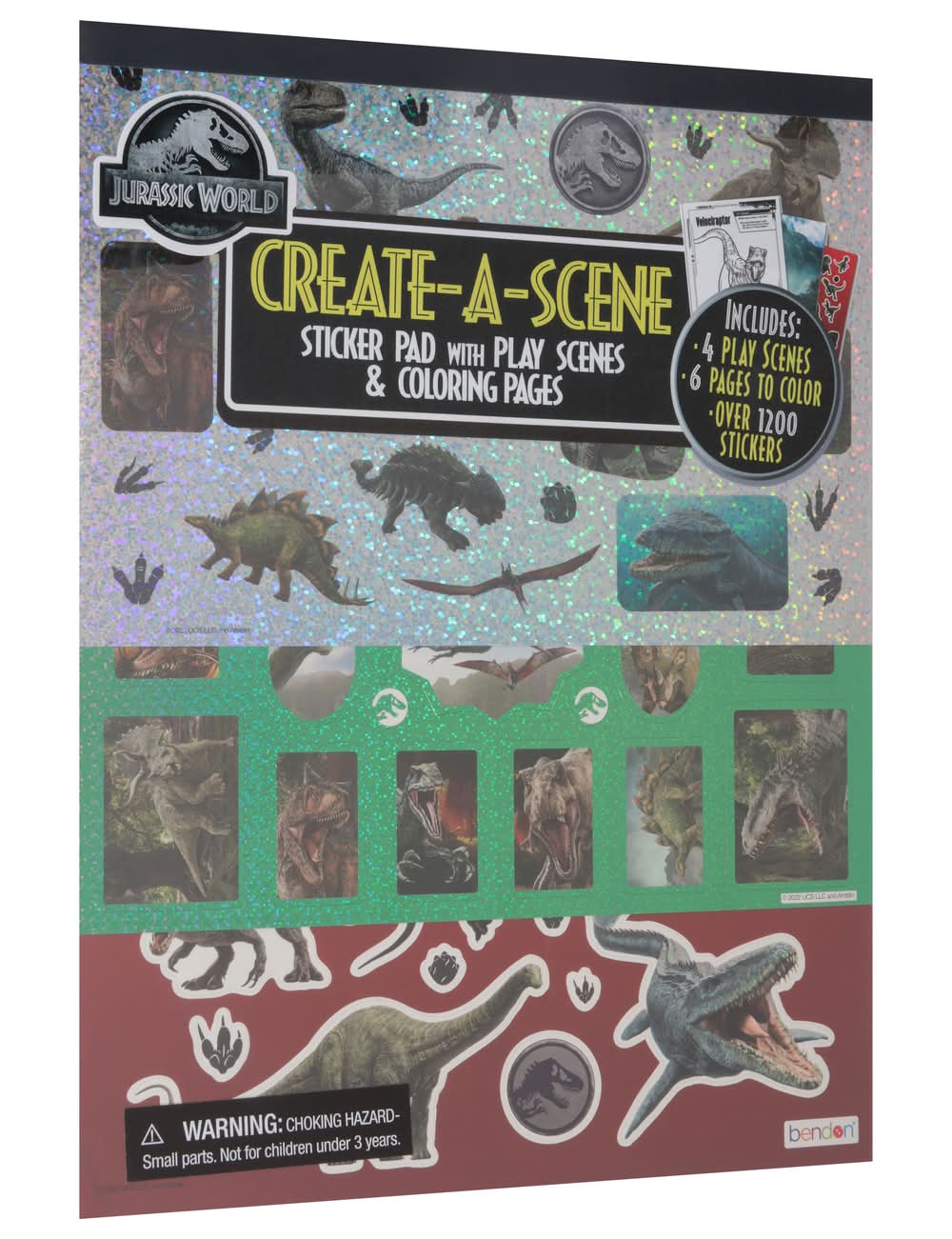 Bendon Create-A-Scene Jurassic World Sticker Pad With Play Scenes & Coloring
