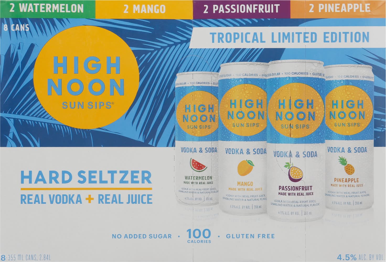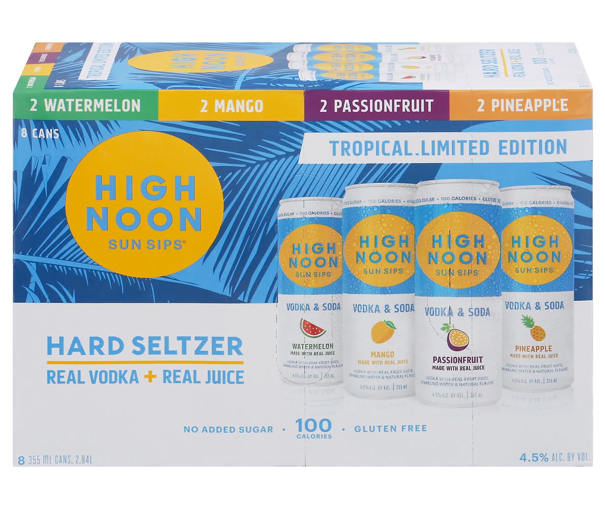 High Noon Tropical Limited Edition Hard Seltzer, Watermelon-Mango-Passionfruit-Pineapple (8 x 12 fl oz)