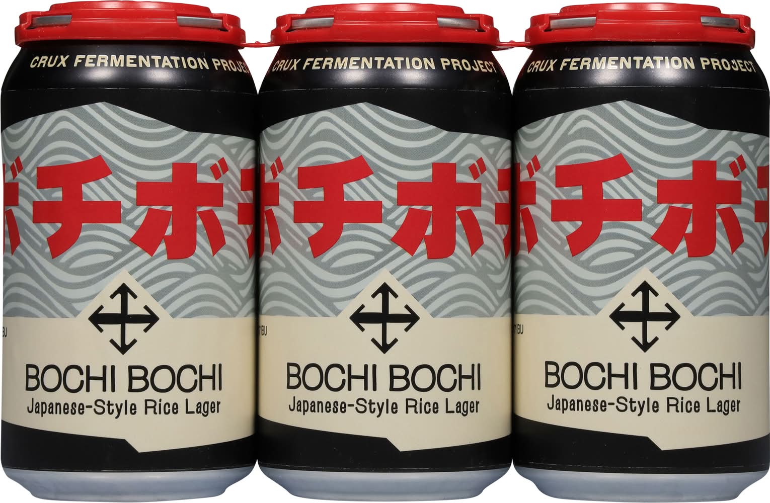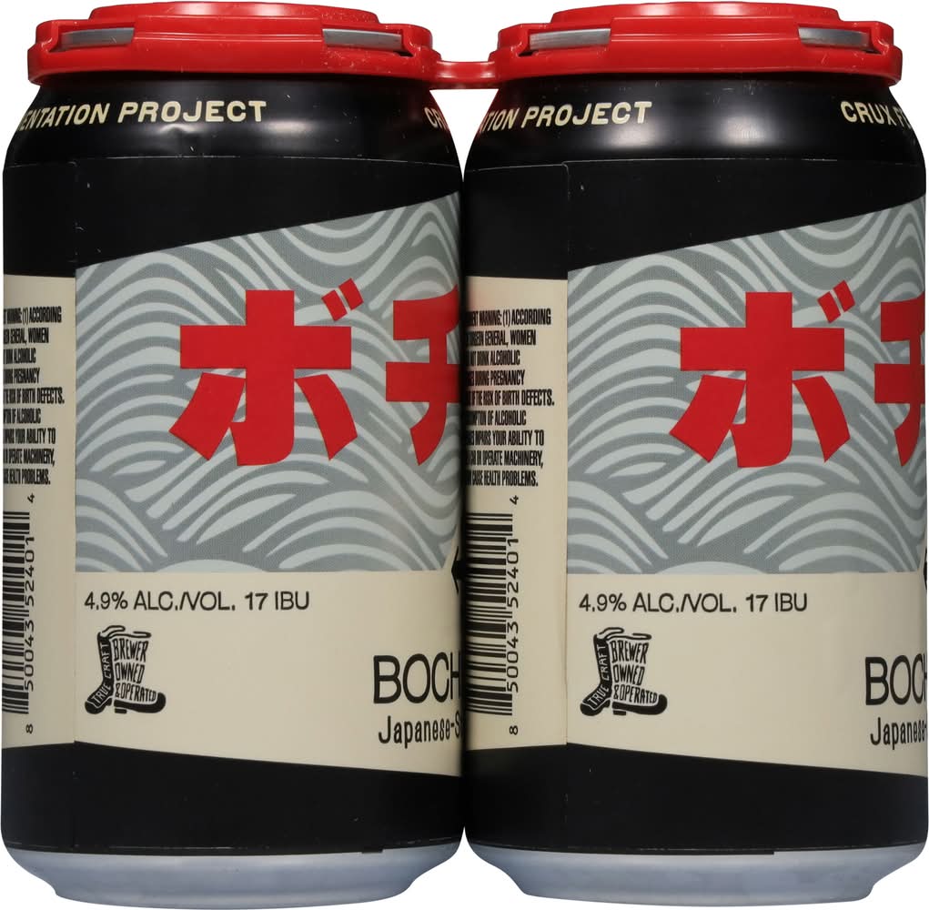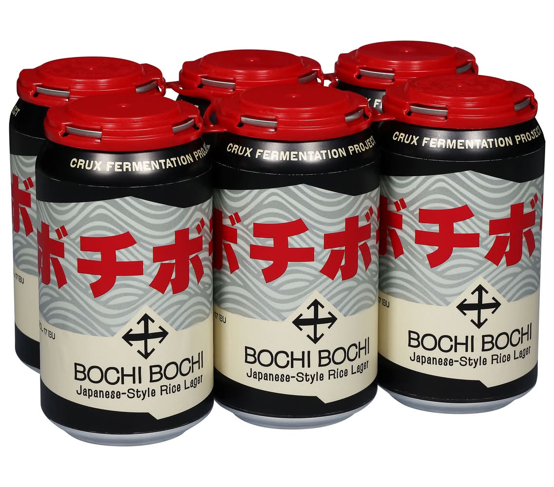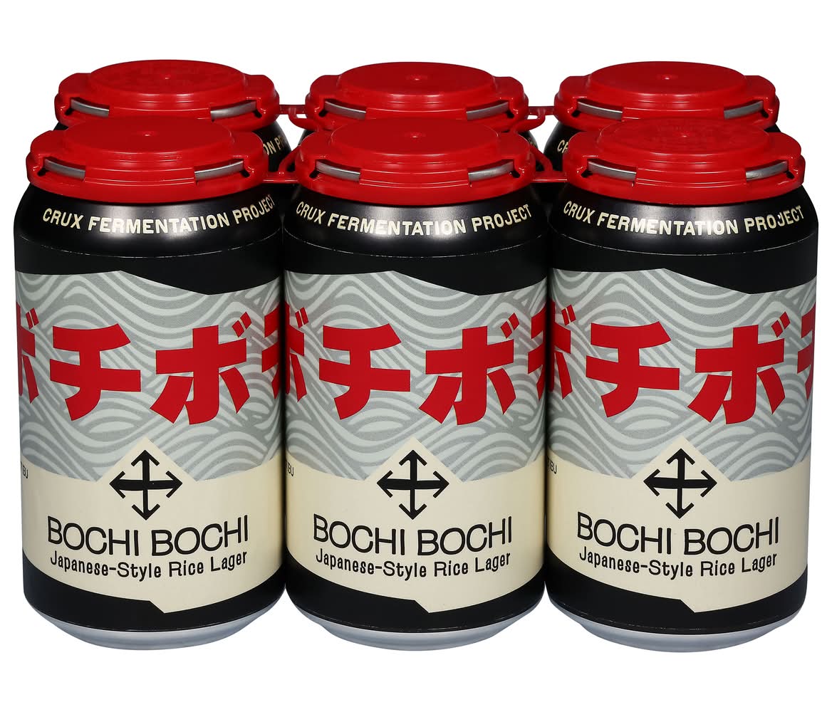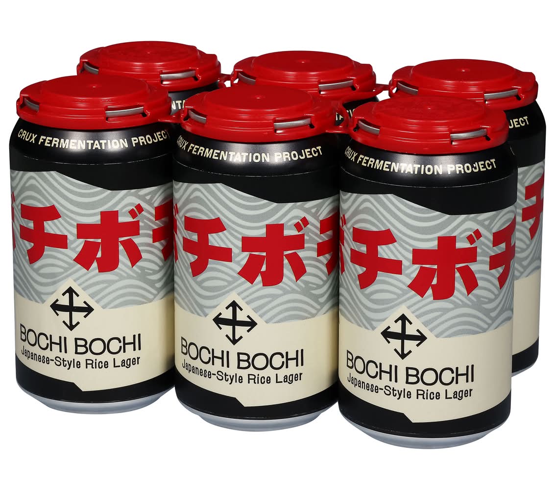 Beer, Japanese-Style Rice Lager, Bochi Bochi • Pack size: 6 • Alcohol by volume: 4.9% • Packaging: Reusable