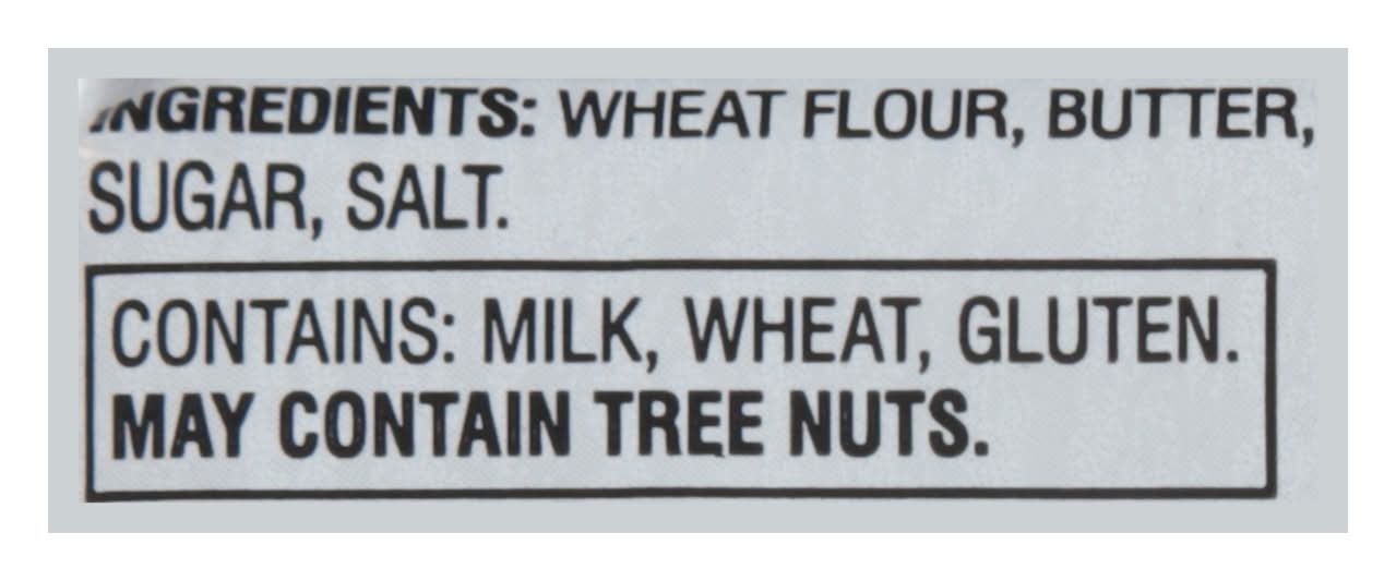 Ingredients: Wheat Flour, Butter, Sugar, Salt Contains: Gluten