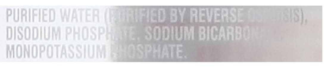 Ingredients: Purified Water (Purified by Reverse Osmosis), Disodium Phosphate, Sodium Bicarbonate, Monopotassium Phosphate