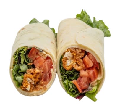 Hand-breaded spicy chicken tender, with pepper jack cheese, fresh cut lettuce, and tomato wrapped in tortilla wrap.