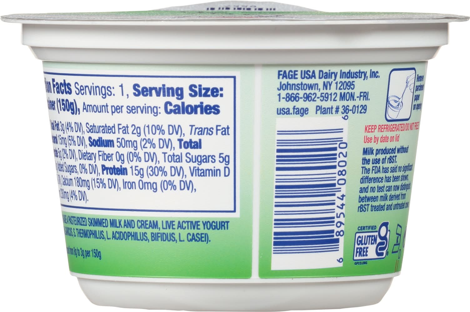 Certified gluten free. 2% milkfat. Reduced fat (2% milkfat). 63% less fat than our 5% milkfat yogurt (per 150g). Fat content reduced . Project verified. nongmoproject.org. Pronounced: Fa-yeh! All natural. Milk produced without the use of BST. The FDA has said no significant difference has been shown and no test can now distinguish, between milk derived from rBST treated and untreated cows. • Fage USA Dairy Industry, Inc., Johnstown, NY, 12095 • Packaging: Reusable
