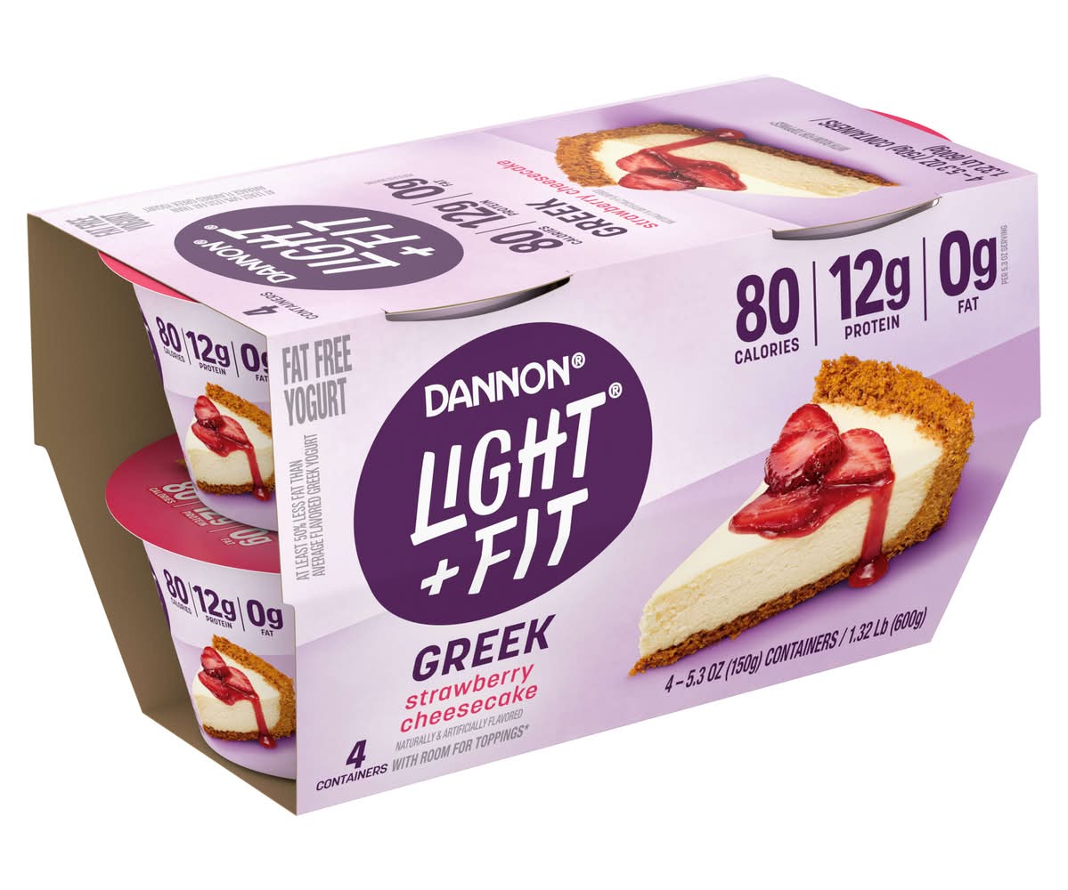 Dannon Light + Fit Greek Fat Free Yogurt, Strawberry Cheesecake (4 x 5.3 oz)