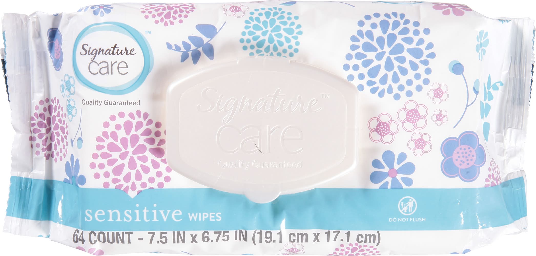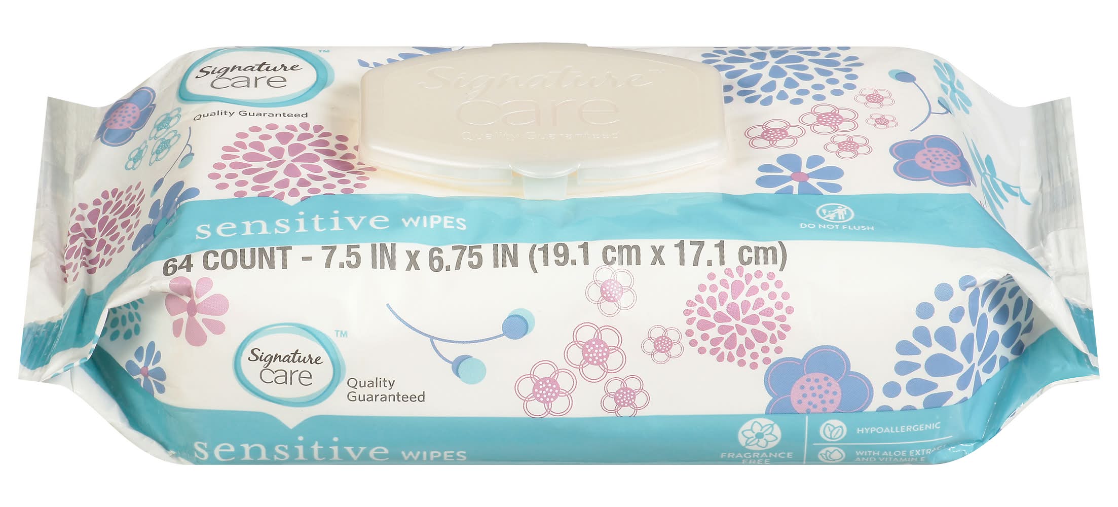 Signature Care Sensitive Wipes, 7.5 inx6.75 in (64 ct)
