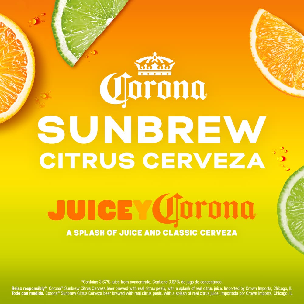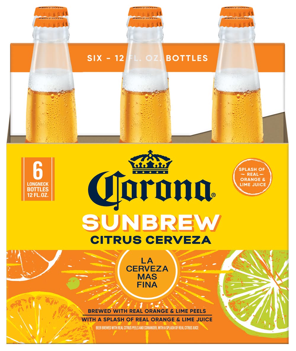 Brewed with real orange and lime peels, Corona Sunbrew Citrus Cerveza combines bold citrus flavors with traditional Mexican beer. • Pack size: 6 • Alcohol by volume: 4.5%