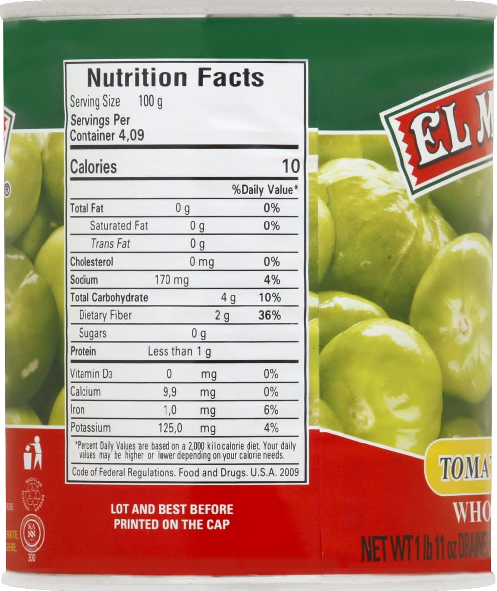 Ingredients: Whole Tomatillos, Water, Vinegar, Iodized Salt and Spices