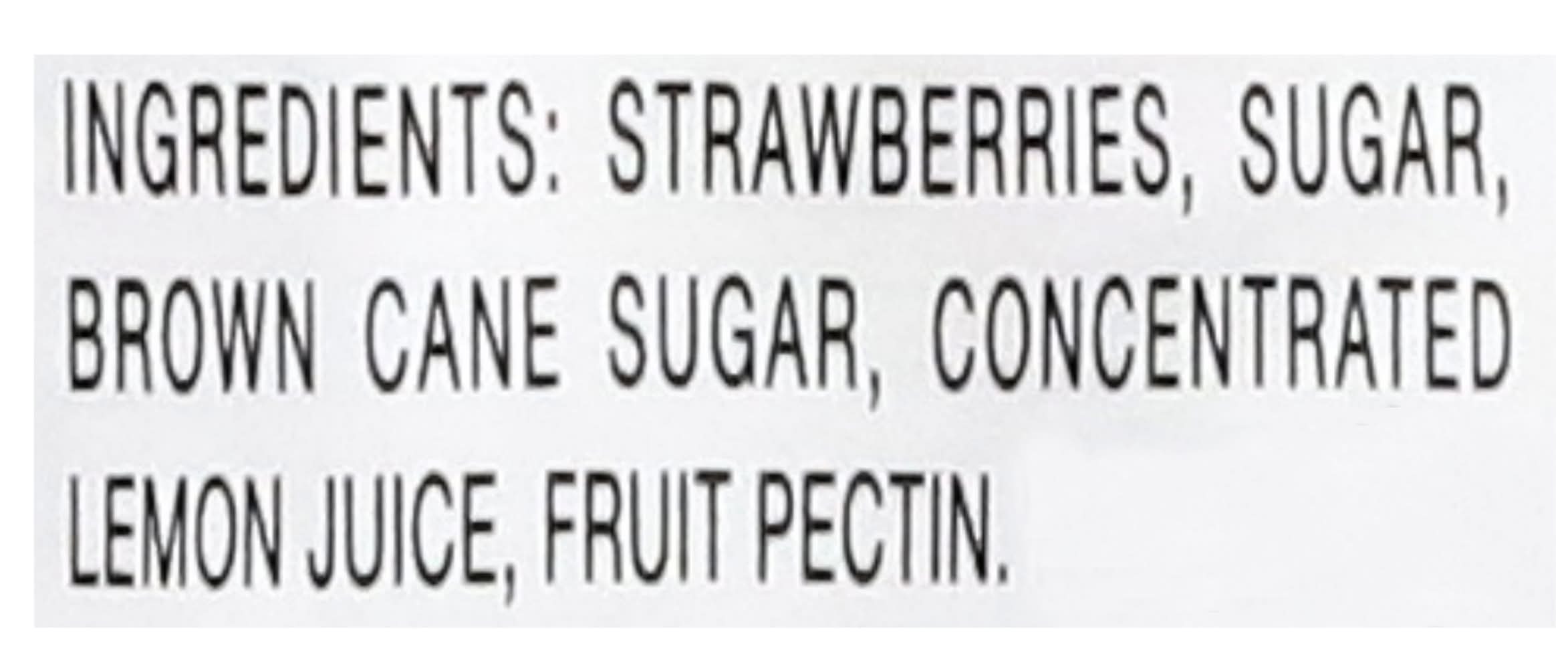 Ingredients: Strawberries, Sugar, Brown Cane Sugar, Concentrated Lemon Juice, Fruit Pectin