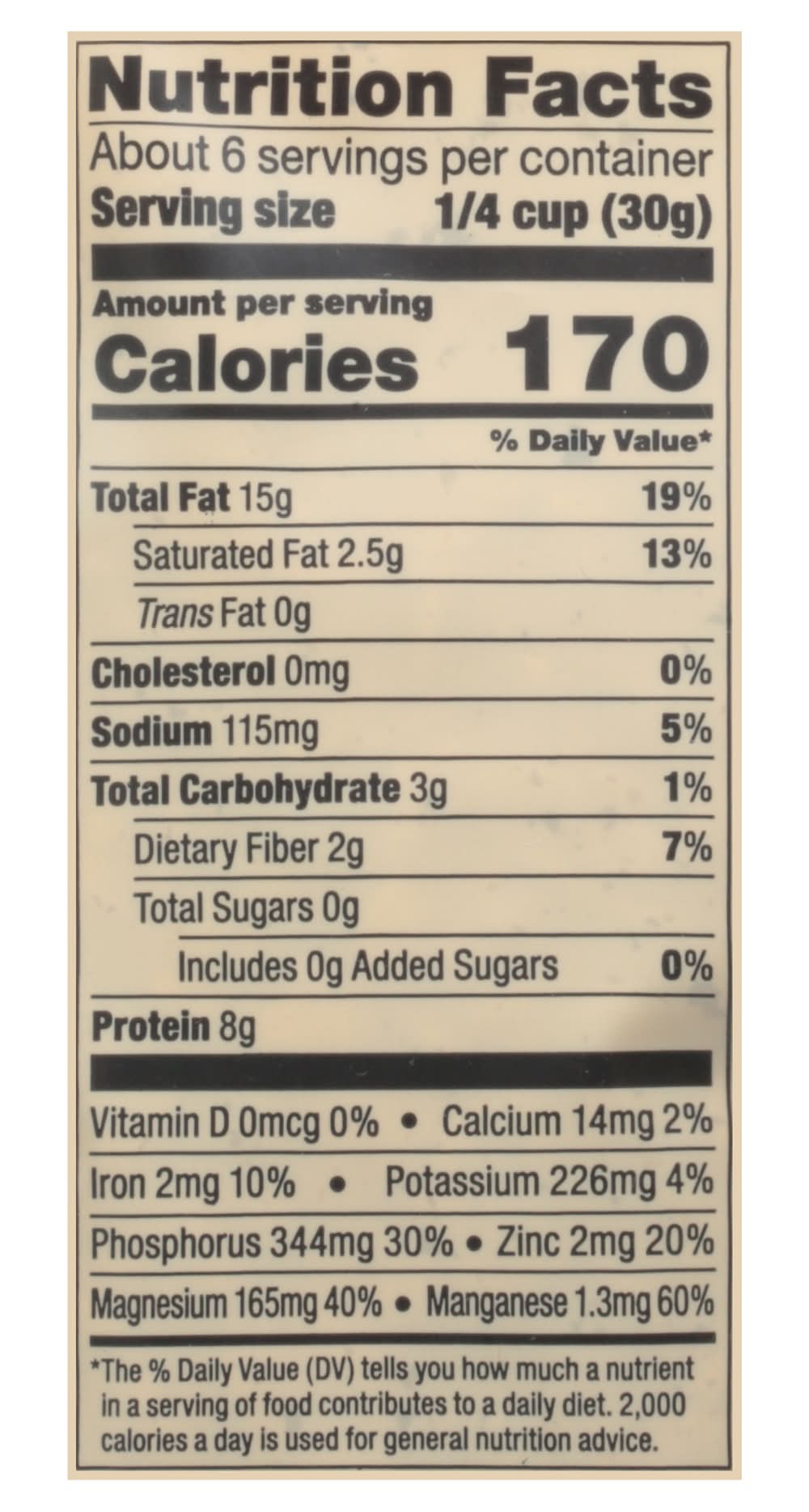 Ingredients: Organic Pumpkin Seeds, Organic High Oleic Sunflower Oil, Salt Contains: Peanuts, Tree Nuts, Milk, Wheat, Sesame, Soybeans, Eggs
