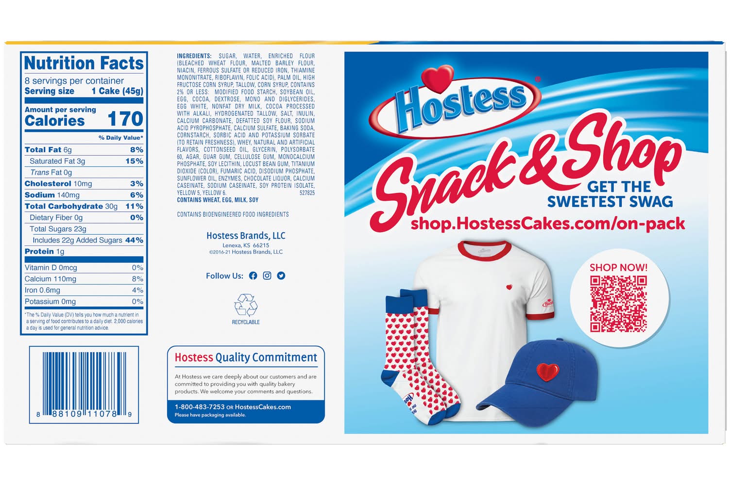 • Flavor: Frosted golden cake • Hostess Brands LLC, Lenexa,KS,66215 • Packaging: Reusable