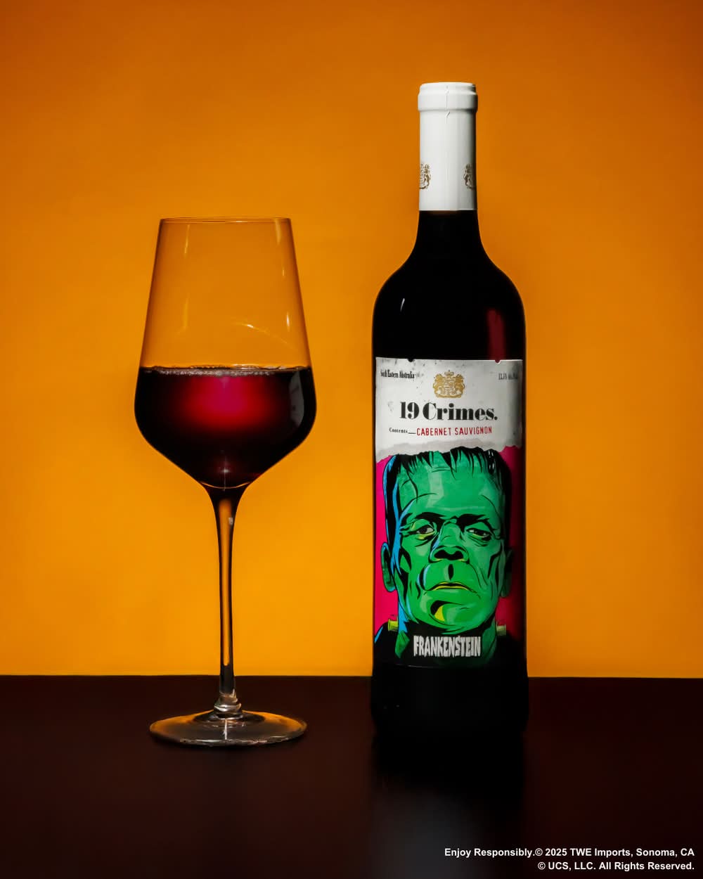 19 Crimes tells the true story of rulebreakers who beat the odds and overcame adversity to become folk heroes. Most of them were misunderstood like Frankenstein who wasn’t a monster; he was just upset people didn’t want to hang out. So next time an eight-foot tall guest arrives, pour him a glass of this limited edition Cabernet Sauvignon. With aromatics of dark berries, violets and vanilla in a glow in the dark bottle, it is sure to be a crowd pleaser. Alcohol by volume: 13.5%