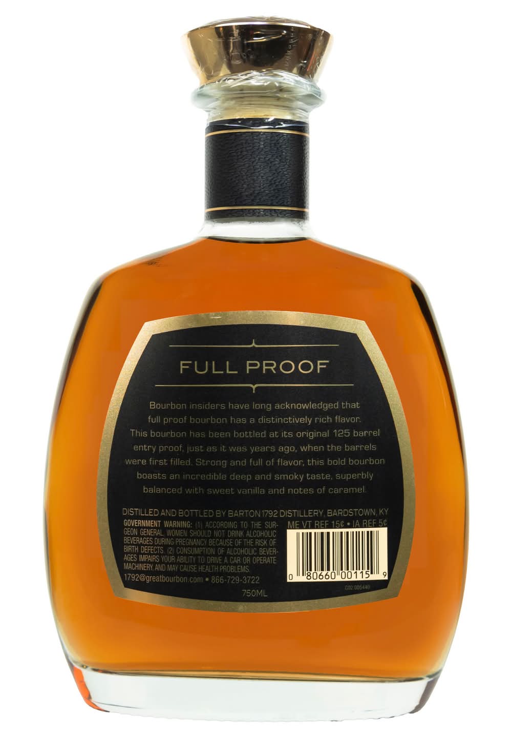 Elevating whiskey to new heights, 1792 Full Proof Kentucky Straight Bourbon Whiskey is an award-winning whiskey that is rich and distinguished. 1792 bourbon is created at the oldest fully operating distillery in Bardstown, Kentucky, the heart of bourbon country. This distinctly different bourbon whiskey features a bold flavor profile. Boasting incredible deep and smoky taste, this bourbon whiskey is superbly balanced with sweet vanilla and notes of caramel. The bourbon undergoes a distinct filtering process, forgoing the typical chill filtration and passing only through a plate and frame filter. This Kentucky bourbon whiskey is 125 proof. Enjoy 1792 bourbon whiskey on the rocks, neat, or in your favorite whiskey cocktails, such as an old fashioned or Manhattan. Raise a glass to raised expectations with 1792 Bourbon Whiskey. Alcohol by volume: 62.5%