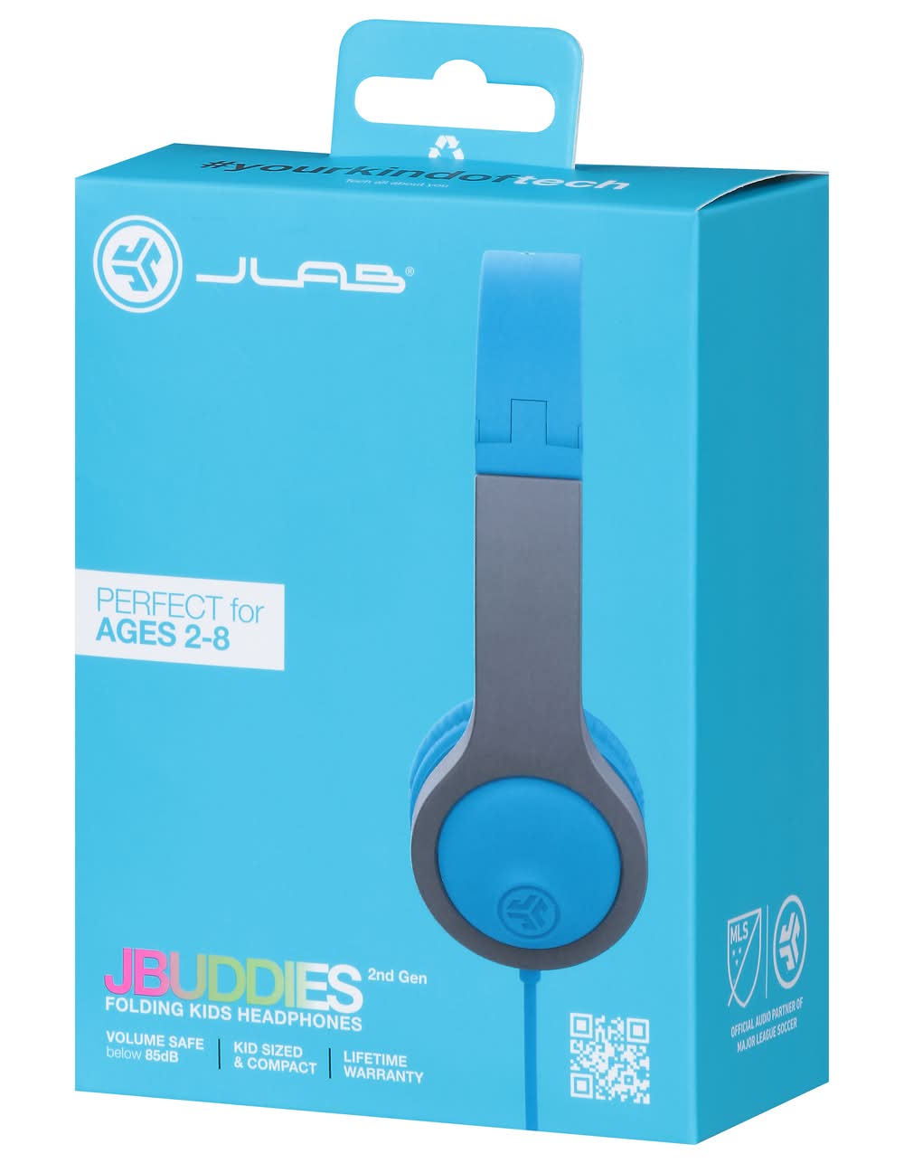 JLab Jbuddies Folding On-Ear Kids Wired Headphones, Blue-Gray