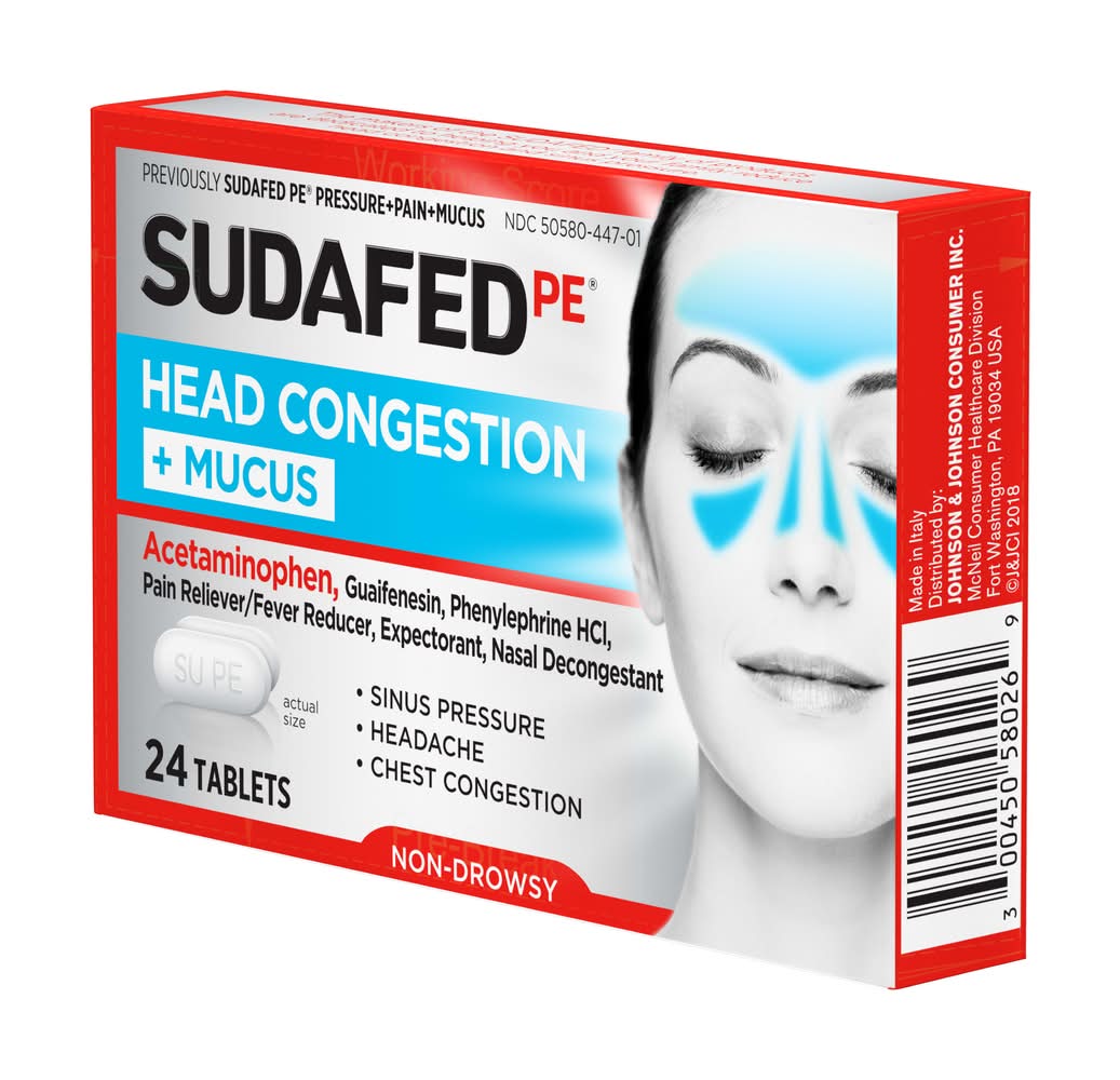 Sudafed PE Head Congestion + Mucus Pain Reliever Tablets (24 ct)