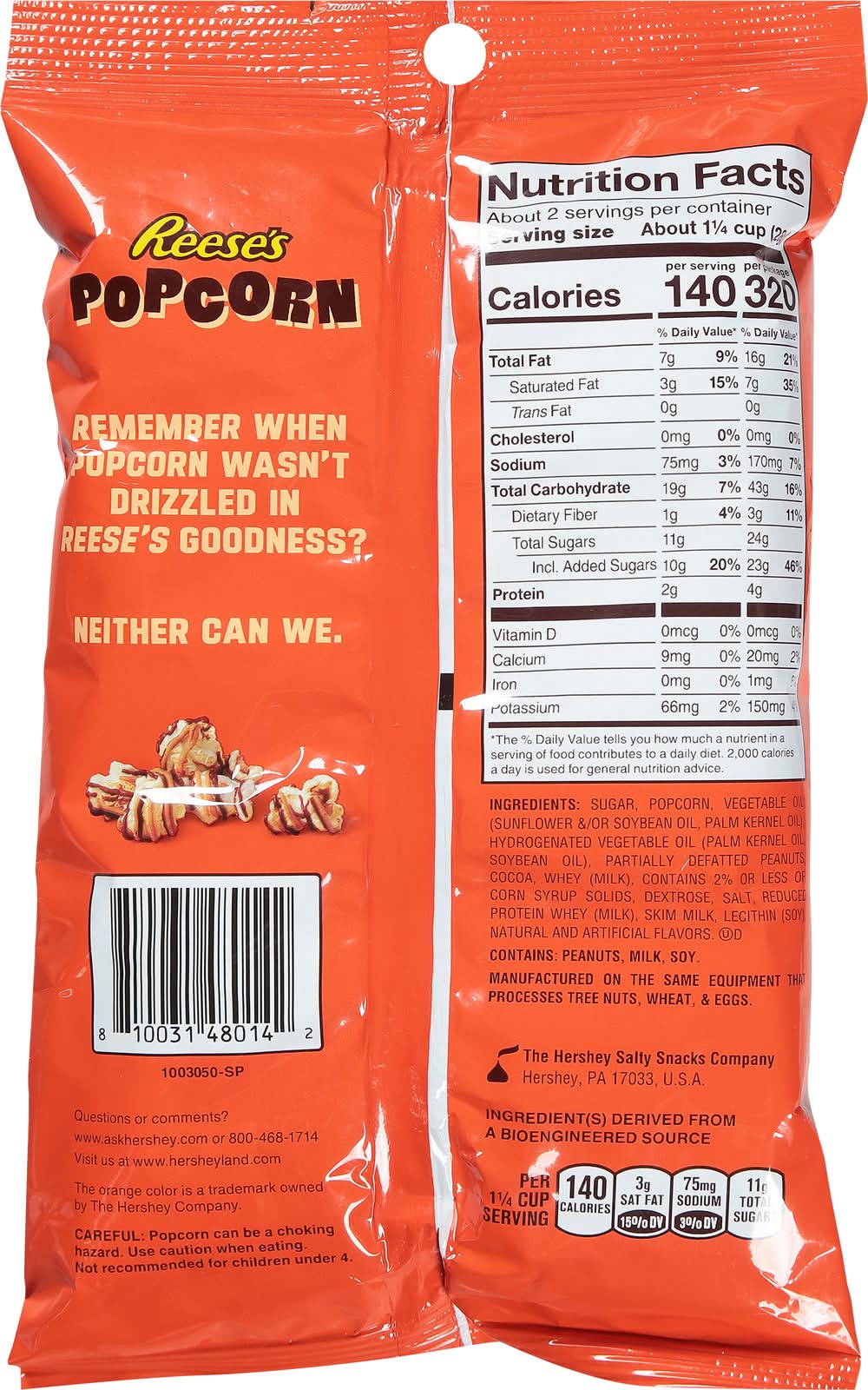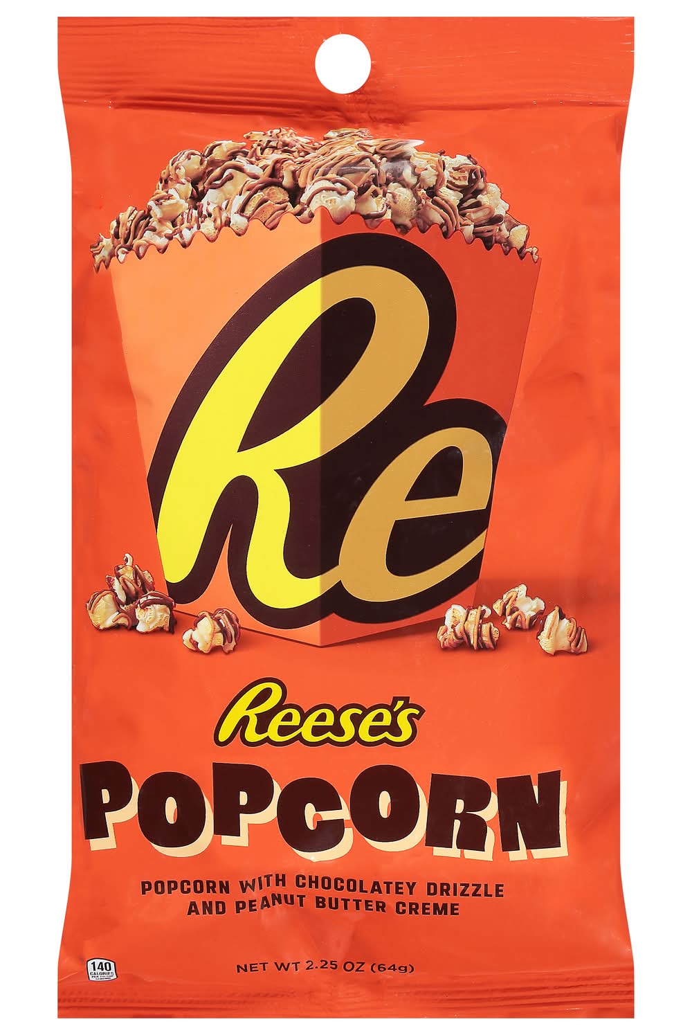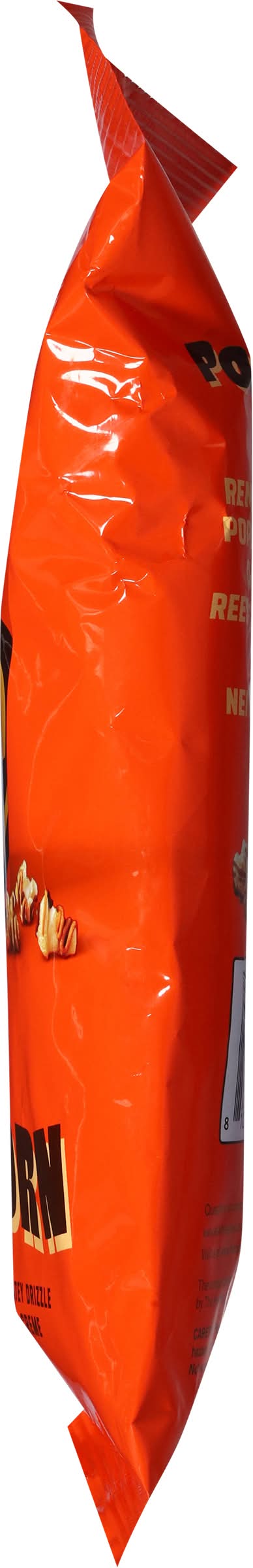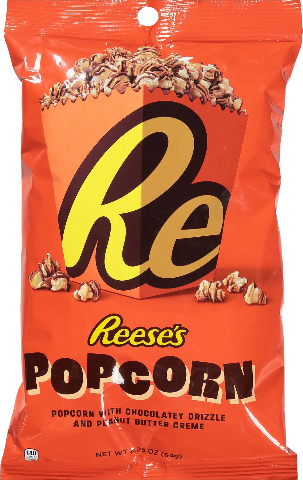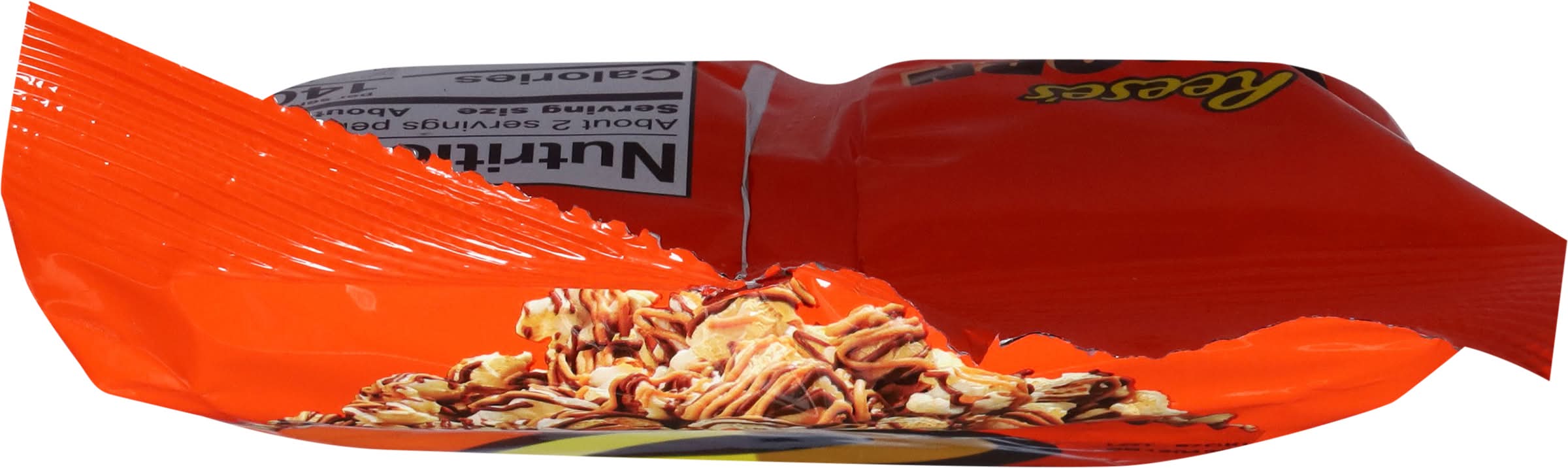 REESE'S Drizzled Popcorn is your new go-to when you need a sweet and salty snack. REESE'S Popcorn is coated in smooth peanut butter creme and drizzled in indulgent chocolatey deliciousness for a one-of-a-kind popcorn treat. This drizzled popcorn gives you a chocolate and peanut butter taste in every bite. You can add it to your work or school snack essentials or share (or not!) at your next get-together or movie night. Each sweet, salty, and creamy-yet-crunchy handful will satisfy your sweet tooth in the best way possible.