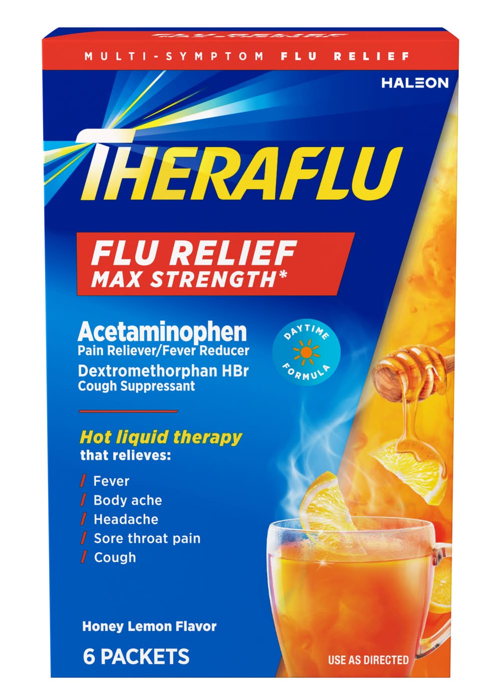 Theraflu Daytime Flu Relief Max Strength Hot Liquid Therapy, Honey-Lemon (3.2 oz, 6 ct)