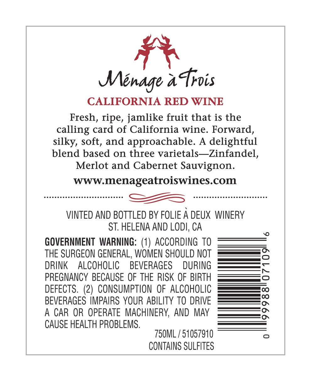 Ménage à Trois California Red Blend Red Wine, 2016 (750 ml)