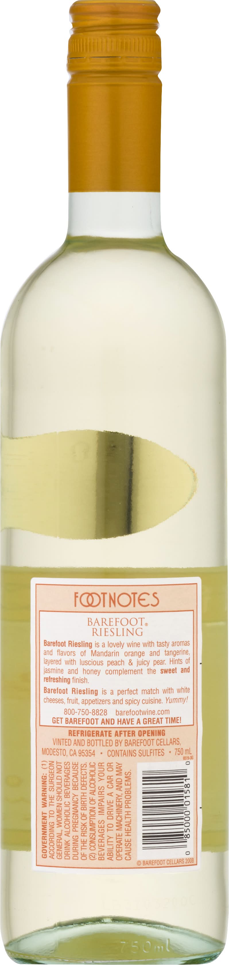 Directions for use: Barefoot Riesling is a perfect match with white cheeses, fruit, appetizers and spicy cuisine. Yummy! Refrigerate after opening. Storage recommendation: Refrigerate after opening.