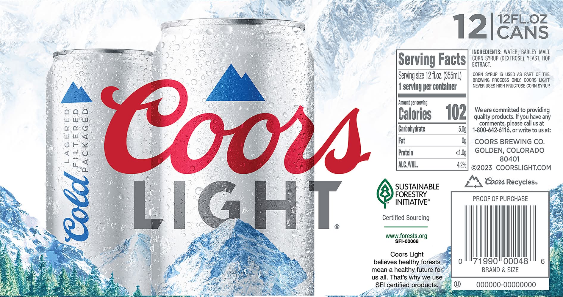 Crisp, clean, and refreshing, Coors Light is an American-style light lager beer. This light beer has 102 calories and 5 grams of carbs per 12-ounce serving. Full of Rocky Mountain refreshment, this light-calorie beer provides a light body with clean malt notes and low bitterness. Share this 12-pack of beer with friends and family all year long when you need refreshing drinks. Not only is Coors Light Golden beer crafted with pure water, lager yeast, two-row barley malt, and four hop varieties, but it’s cold lagered, cold filtered, and cold packaged to deliver an unforgettable beer-drinking experience. • Pack size: 12 • Alcohol by volume: 4.2% • Packaging: Reusable