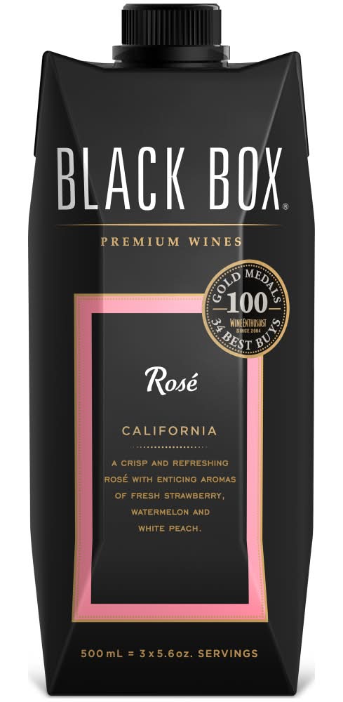 Made from grapes harvested in world-class appellations, Black Box Wines have won over 70 Gold Medals at wine competitions throughout the US and have been awarded over 34 Wine Enthusiast Best Buys. Through a meticulous winemaking process, each of our wines is crafted to be food-friendly, fruit-forward and easy-to-drink. Our gold-medal winning Rose boasts flavors of fresh strawberry, watermelon and crisp white peach. This blush wine is light and refreshing with a dry finish and is delicious with • Alcohol by volume: 12.5% • 2015