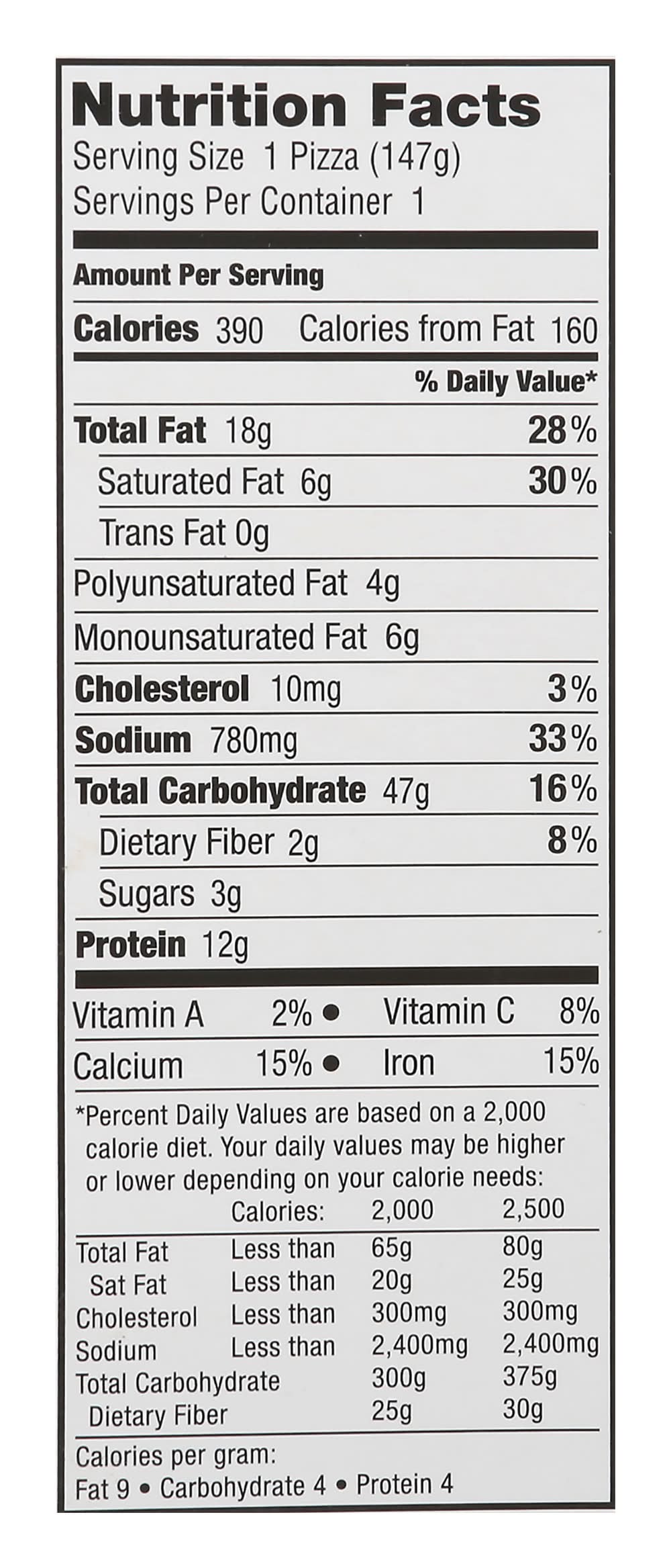 Directions for use: Cooking Instructions: For food safety and quality, follow cooking instructions. Caution: Product may be very hot after cooking appliances vary in efficiency; time and/or temperature may need to be adjusted to achieve 160 degrees F. Product temperature. Refrigerate or discard any leftovers. Conventional Oven: For a crisp crust, Bake Pizza directly on oven rack. 1. Preheat oven to 450 degrees F. 2. Remove pizza from carton and wrapper. 3. Place on middle oven rack. 4/ Bake 9-11 minutes or until cheese blend is melted. Toaster Oven: Due to variance in ovens, times and temperatures are approximate. 1. Preheat oven to 450 degrees F. 2. Remove pizza from carton and wrapper. 3. Place directly on oven rack. 4. Bake 10-12 minutes or until cheese blend is melted. Keep frozen. Storage recommendation: Keep frozen.