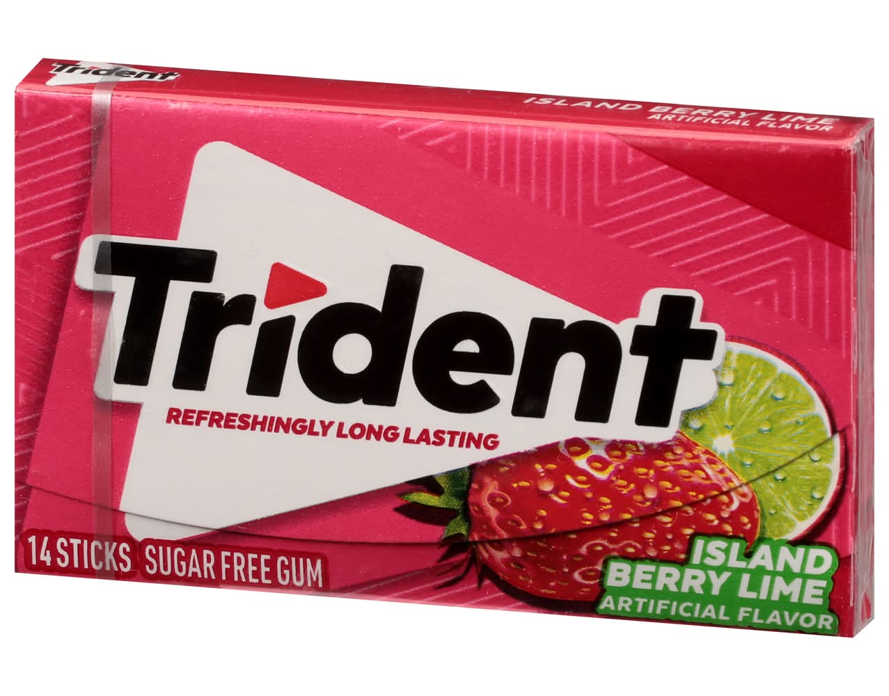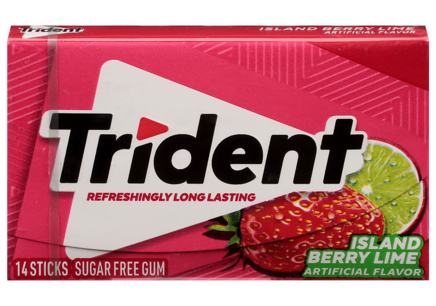 Trident Refreshingly Long Lasting Sugar Free Gum, Island Berry Lime (14 ct)